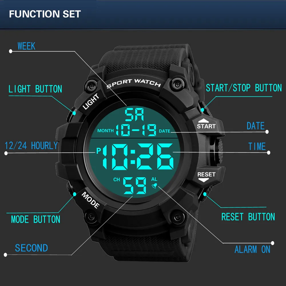 Часы наручные мужские светодиодные цифровые, Водонепроницаемые многофункциональные светящиеся в стиле милитари, для занятий спортом на открытом воздухе, с отображением даты