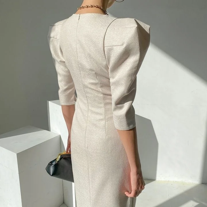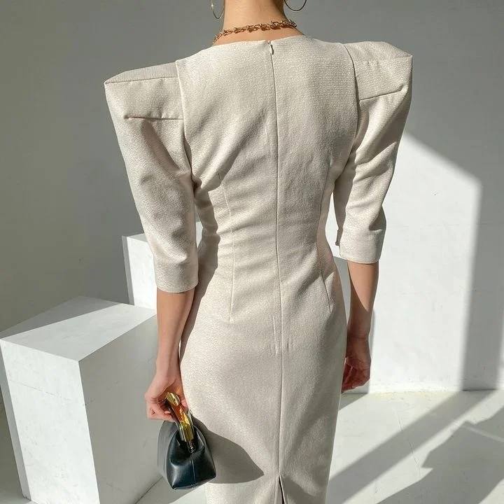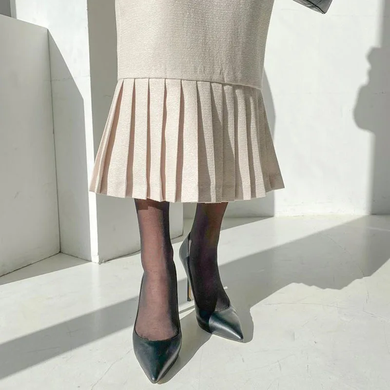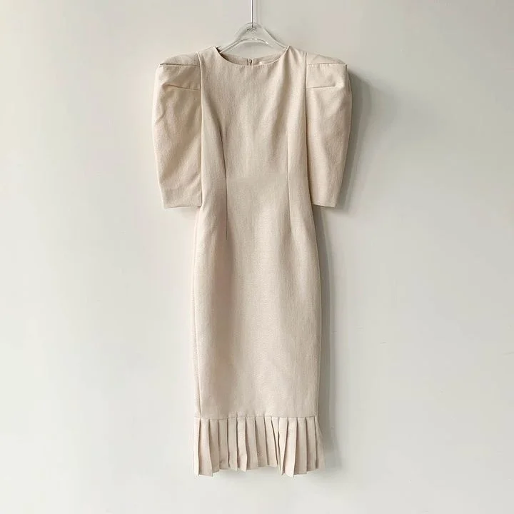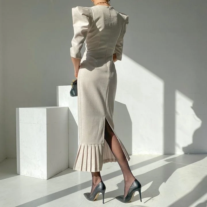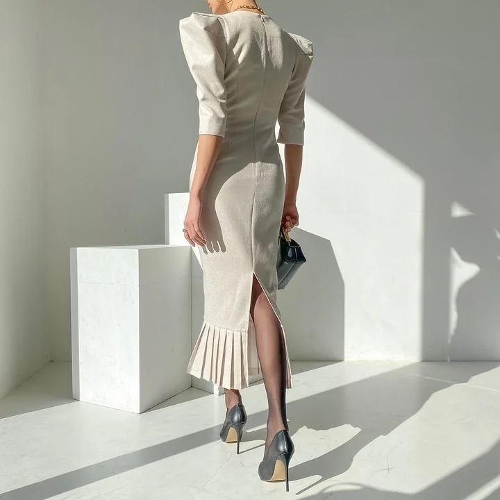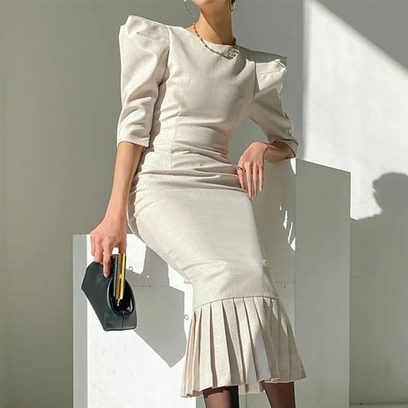 Женское платье с юбкой годе EWQ, черное плиссированное платье до середины икры с О-образным вырезом и рукавом до локтя, модель R1348 в Корейском стиле на весну 2022