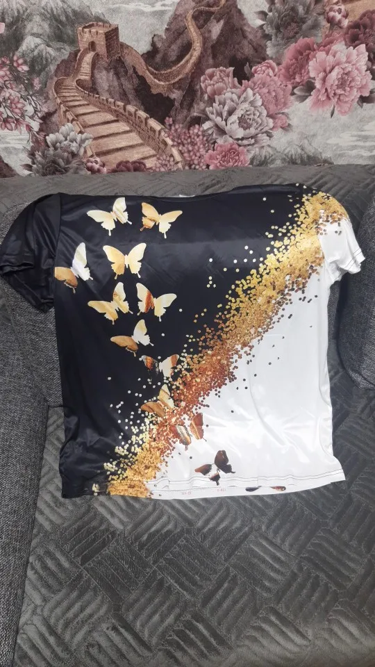 Женская футболка с коротким рукавом, круглым вырезом и 3D-принтом в виде бабочек