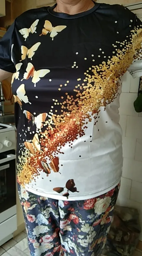 Красивая футболка! На мой 50 размер подошла отлично!!! Не в обтяжку! Спасибо продавцам!