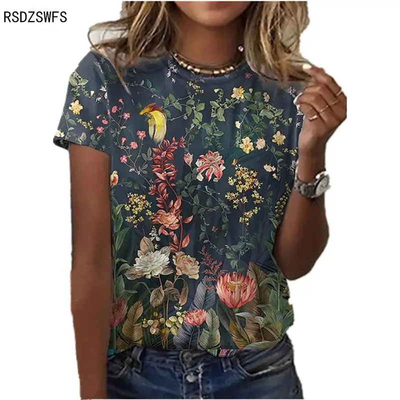 Женская летняя свободная футболка с принтом, Повседневная рубашка с круглым вырезом, летняя Универсальная футболка с большим коротким рукавом в европейском и американском стиле