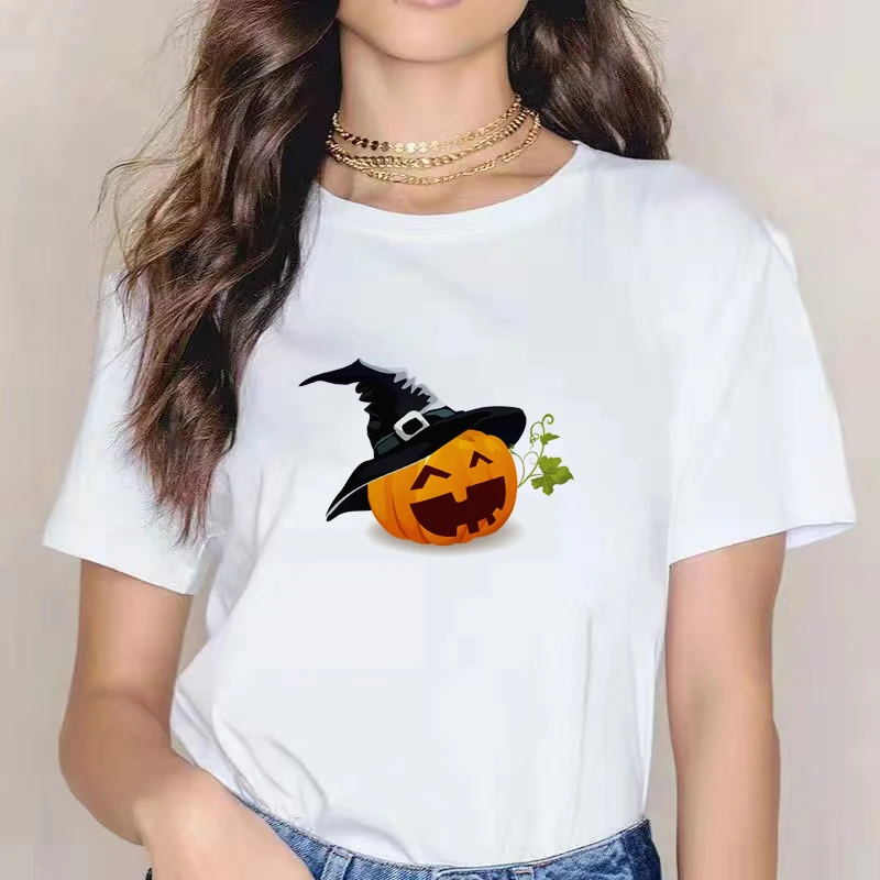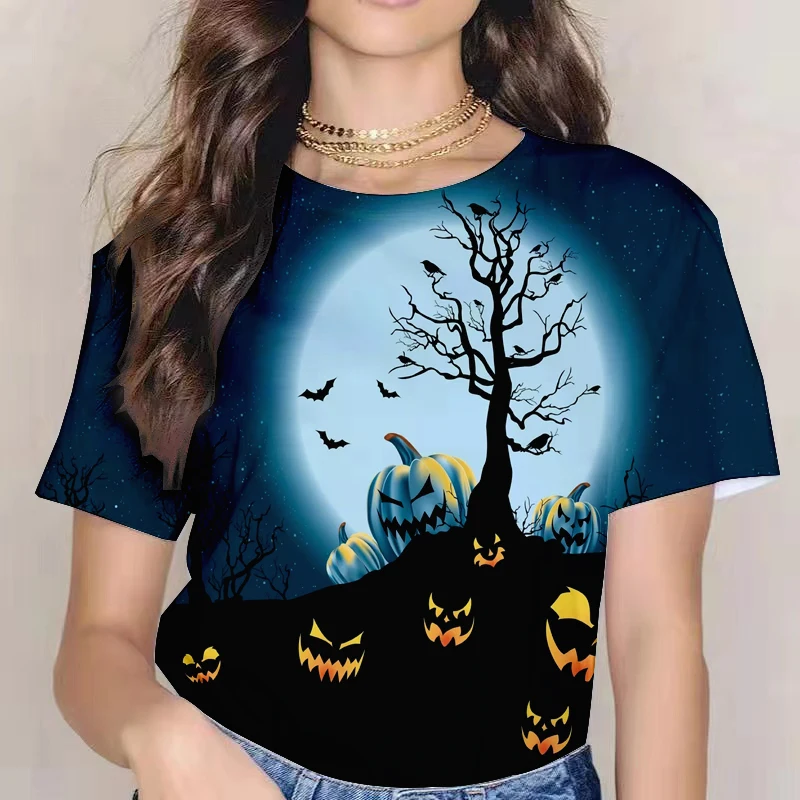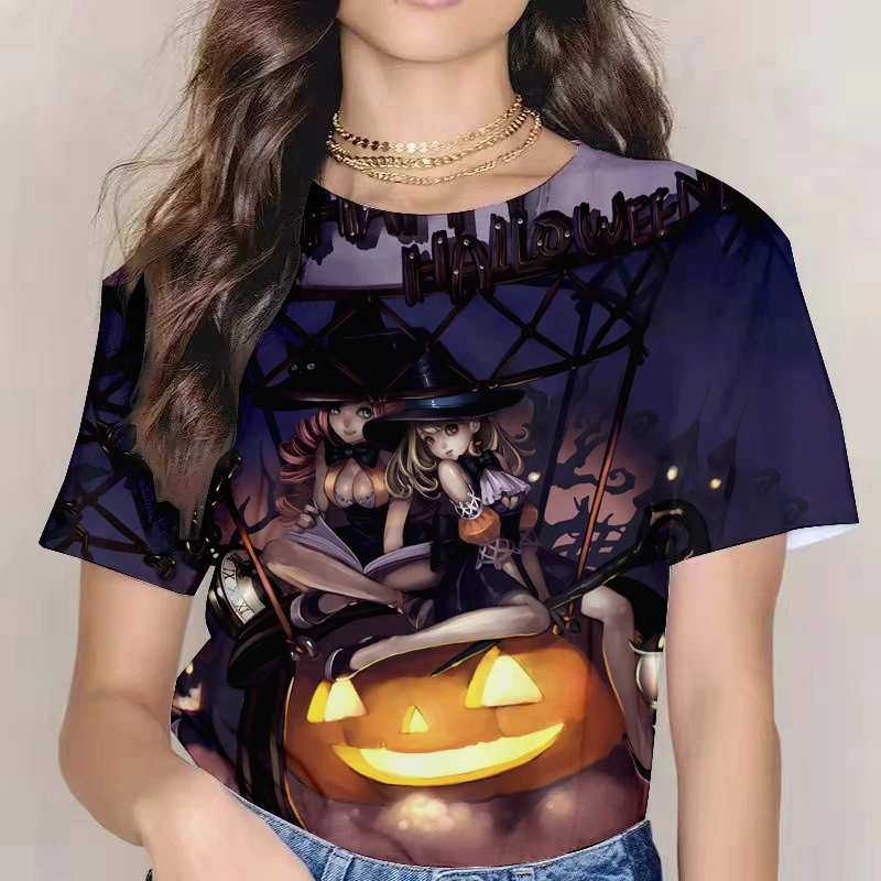 Женский удобный топ с коротким рукавом и 3D-принтом в виде маленькой ведьмы на Хэллоуин, забавная Модная молодежная одежда из полиэстера