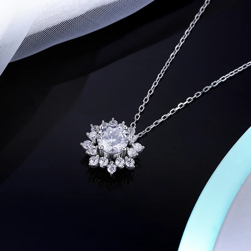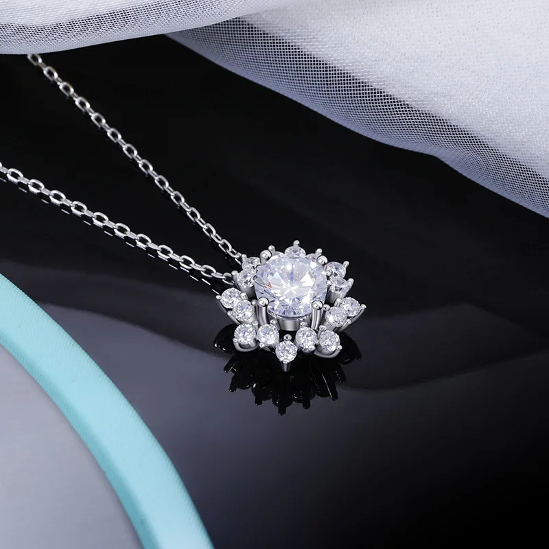 1CT 6,5 мм D Цвет Moissanite Sun Flower кулон ожерелье прошел испытание алмаза S925 Серебряные Ювелирные изделия женщина свадьба подарок