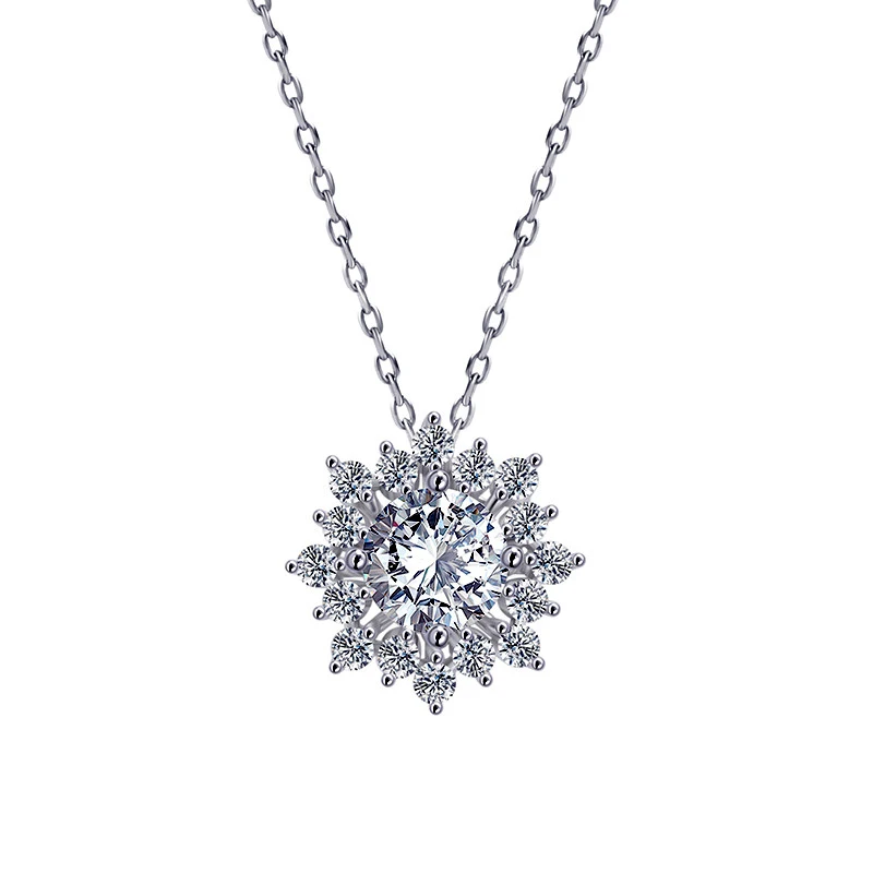 Ожерелье с подвеской в виде цветка с муассанитом, 1 карат