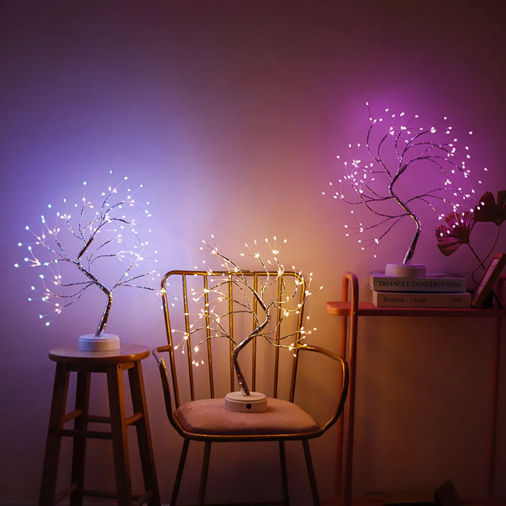 Светодиодный ночсветильник для спальни, настольная лампа с питанием от USB, лампа на дерево с сенсорным выключателем для Рождественского украшения, 108 светодиодов, высота 45 см