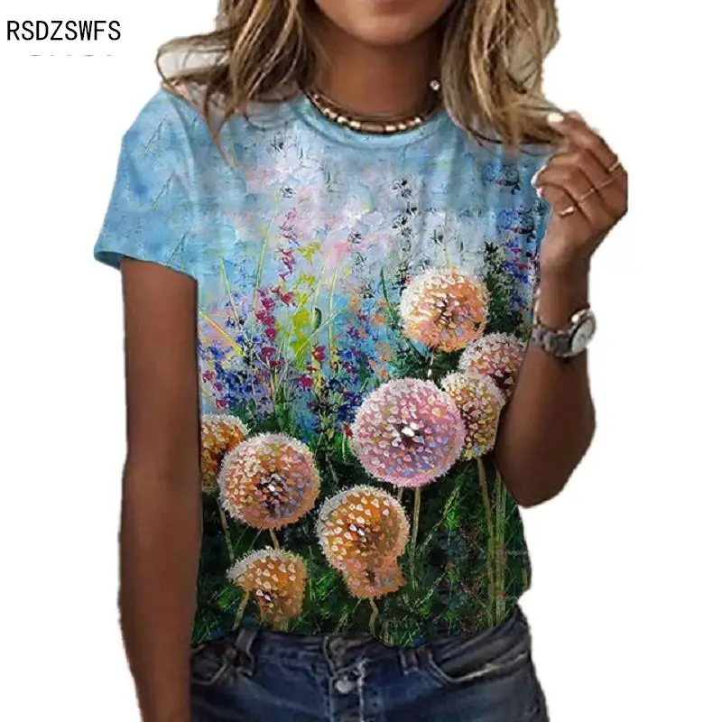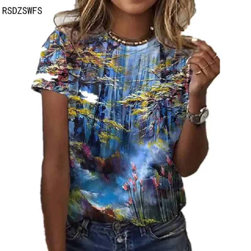 Женская футболка с коротким рукавом, круглым вырезом и 3D-принтом