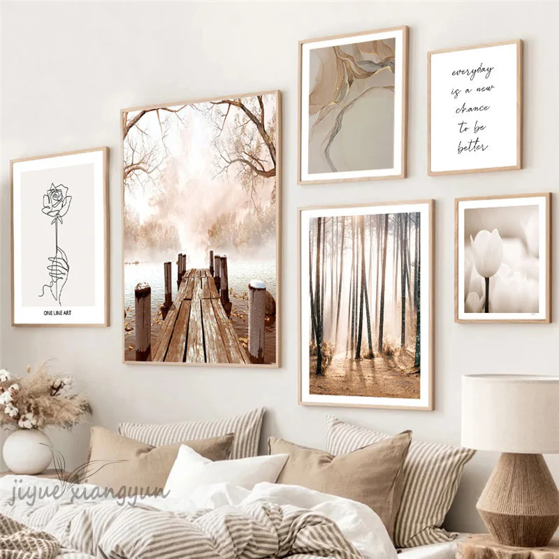 Пейзаж, постеры, золотисто-коричневая абстрактная стена, искусство на холсте, современная картина в скандинавском стиле, природный ландшафт, картины для гостиной, домашний дизайн