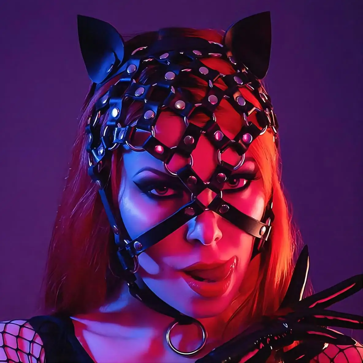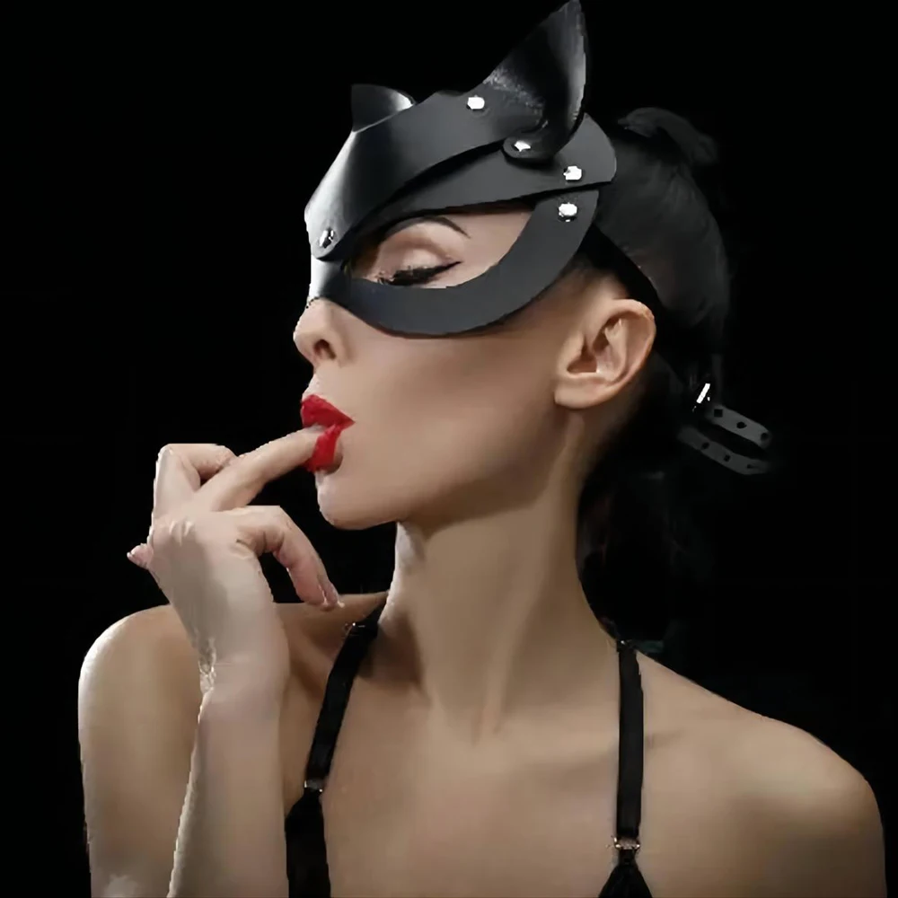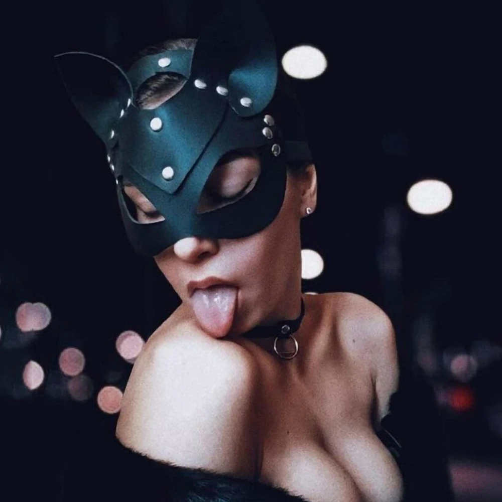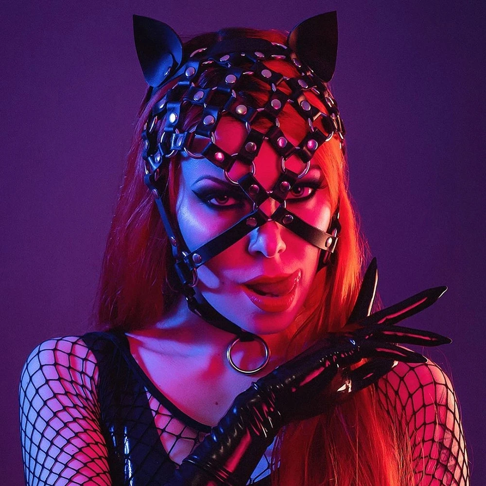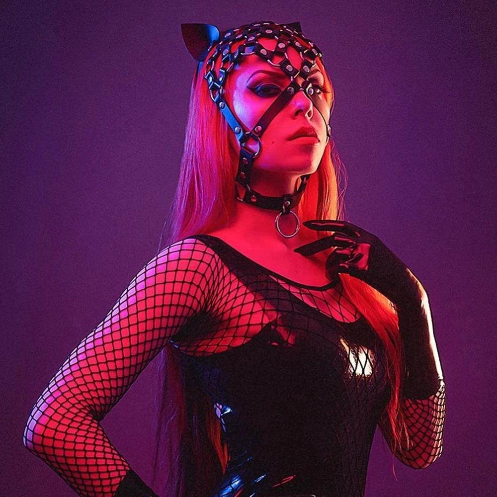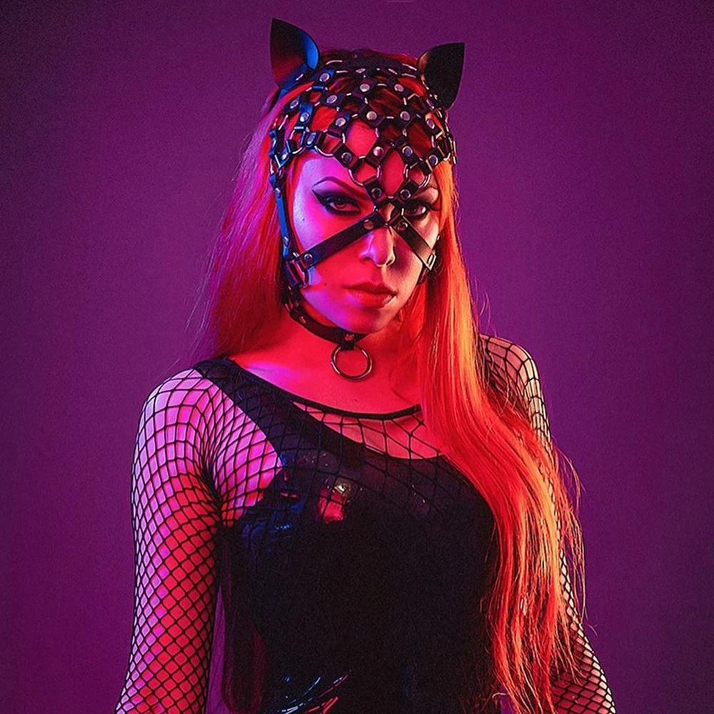 Сексуальная женская маска на голову из искусственной кожи с сетчатой вставкой, головной убор, маска для глаз с подвеской, БДСМ, маскарада, вечеринки, Косплея