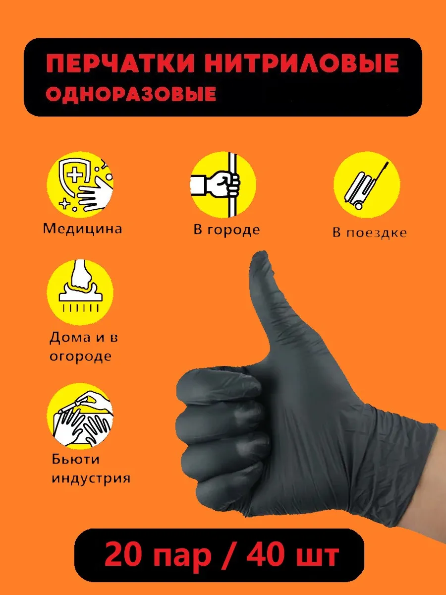 Перчатки одноразовые нитрил винил Wally Plastic, черные 20 пар 40 шт нитриловые