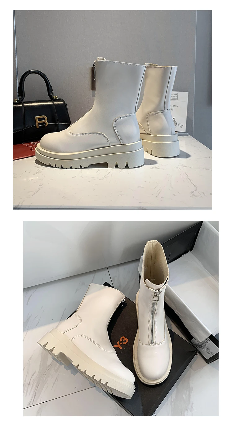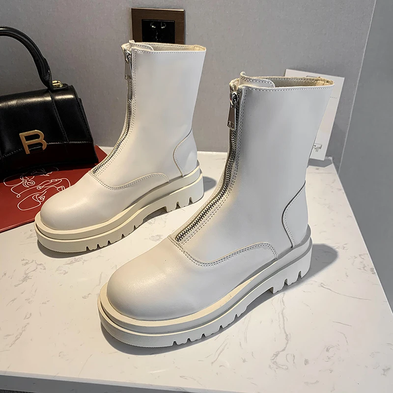 Женские ботильоны на молнии, черные, белые, оранжевые ботинки с круглым носком, на каблуке 5 см, Размеры 35-40, для зимы, 2022