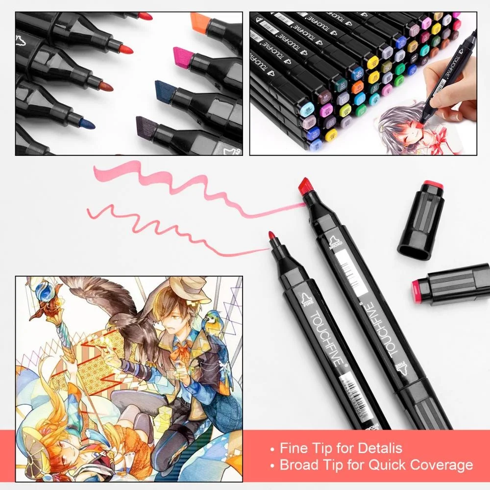 Маркеры TOUCHFIVE 12364880168 цветов, Двойные наконечники, спиртовые графические маркеры для набросков, ручка для закладки, манга, рисования