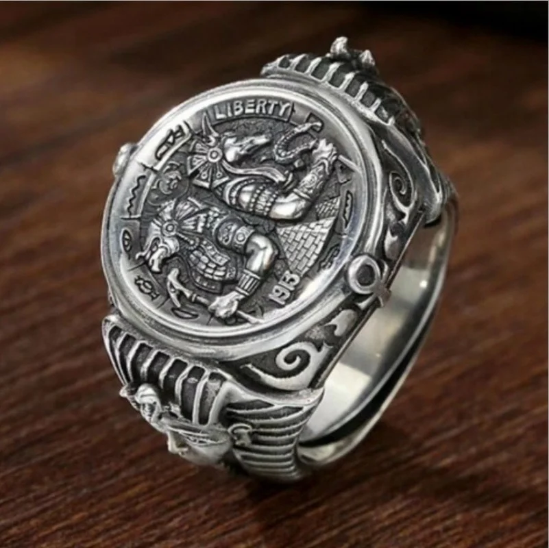Мужское кольцо в виде древней египетской личности Horus Anubis Wanderer, винтажное серебряное резное кольцо богини