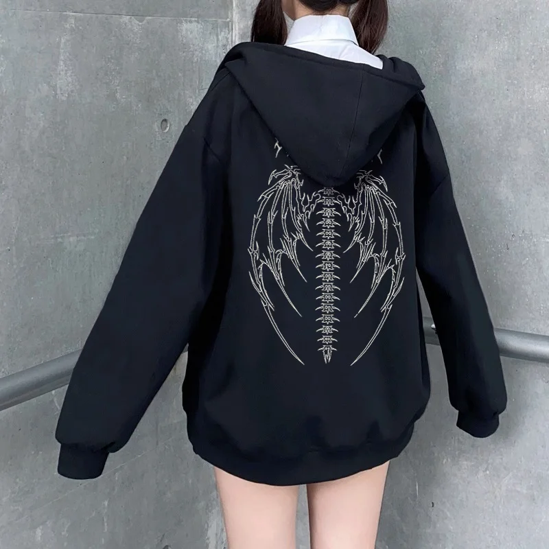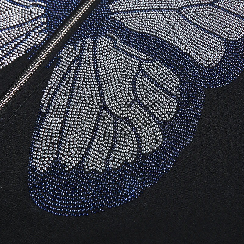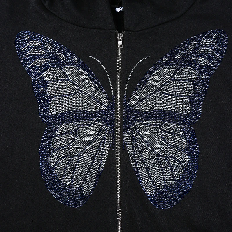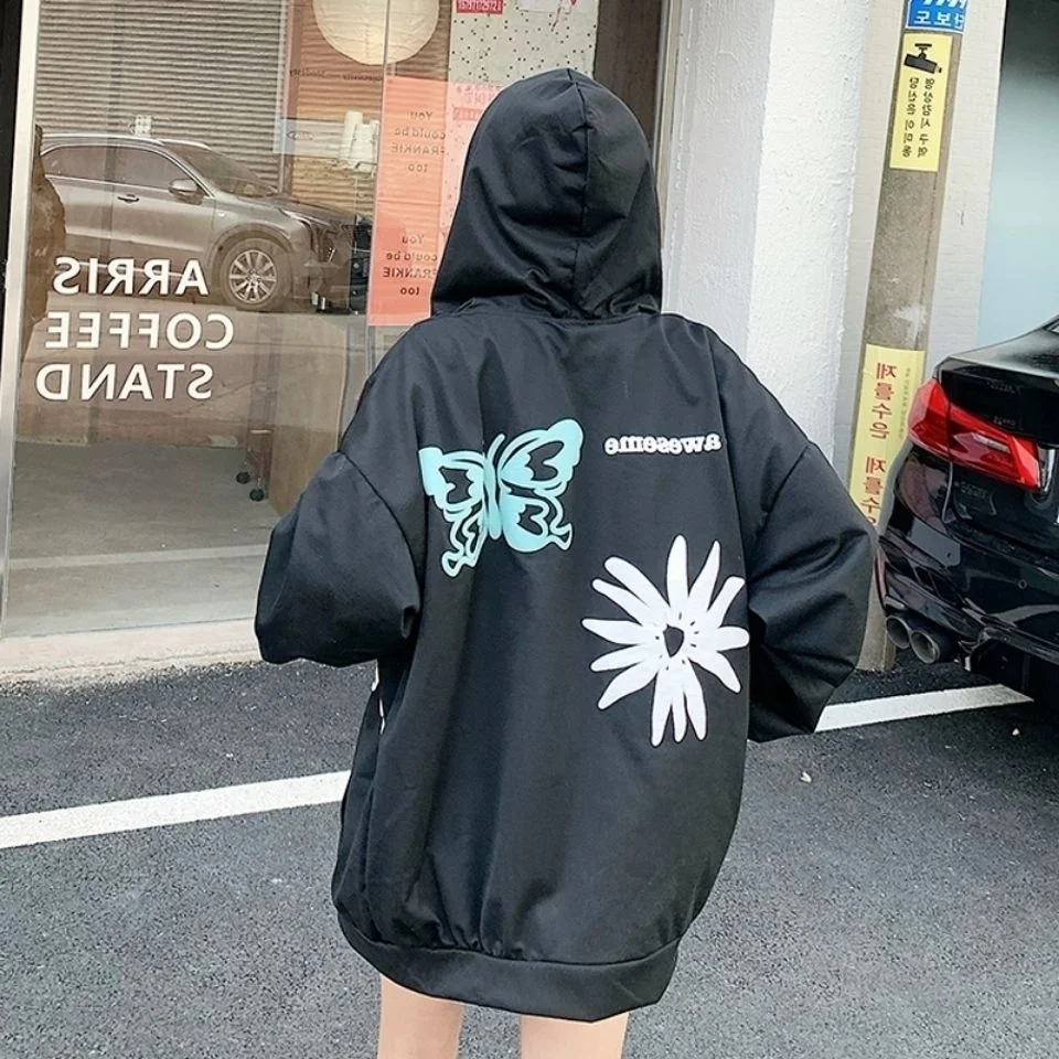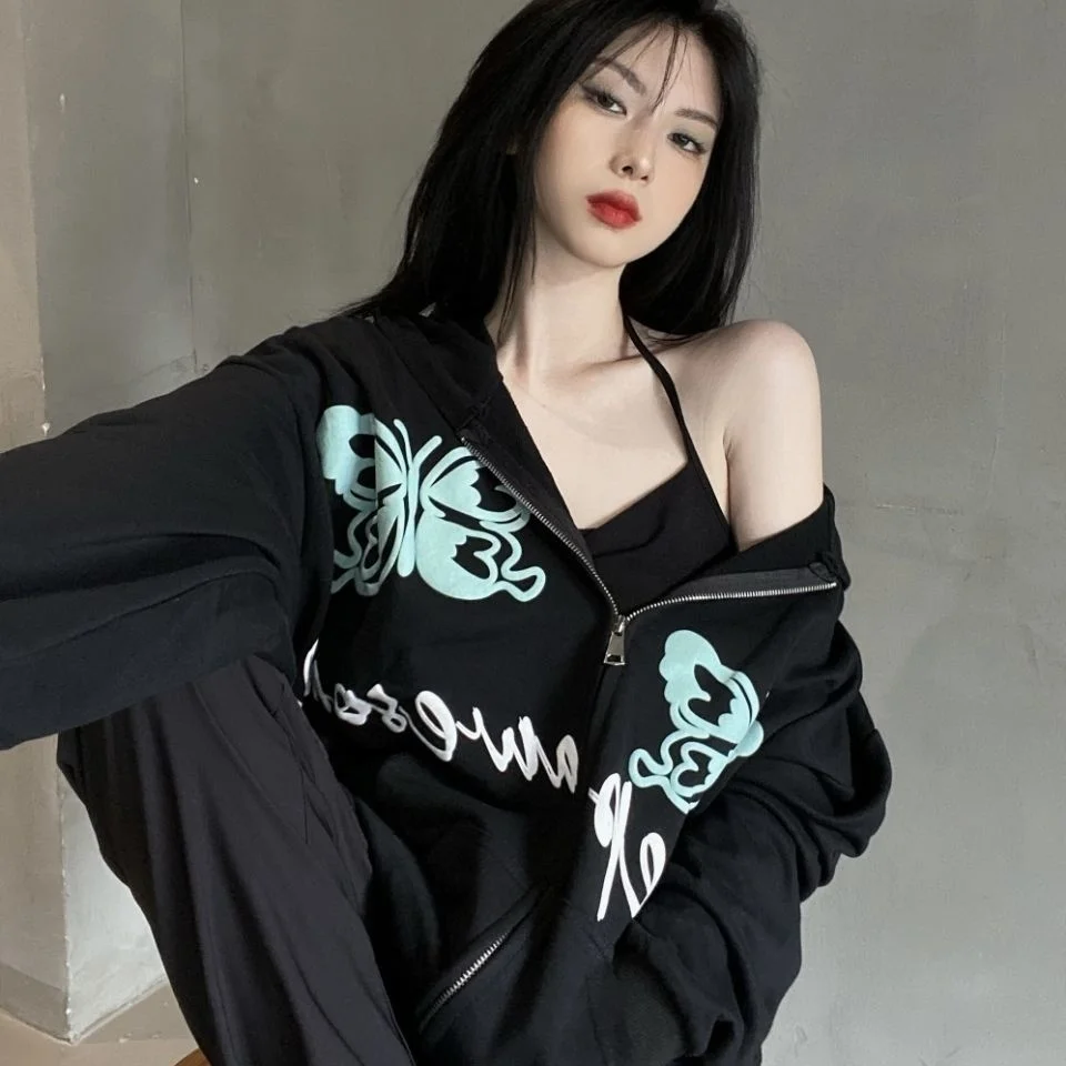 Осенний Женский свитшот с капюшоном в стиле Харадзюку Y2K, свободные женские толстовки на молнии с длинным рукавом и принтом бабочки, пальто для женщин
