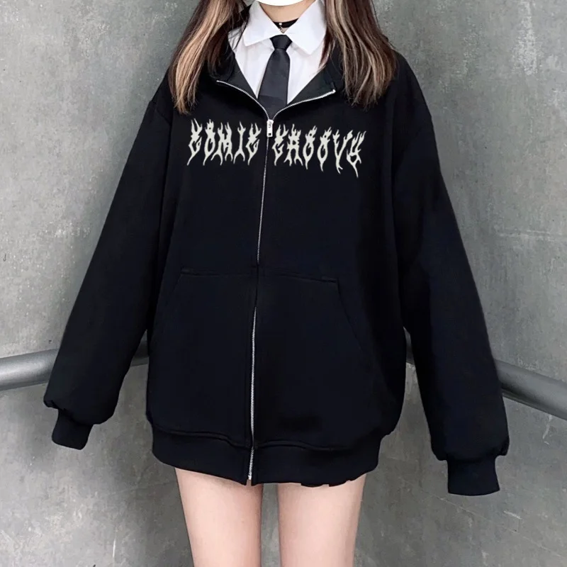 Женская Осенняя куртка в стиле Харадзюку Y2K, свитшот на молнии с д...