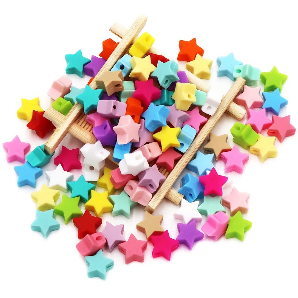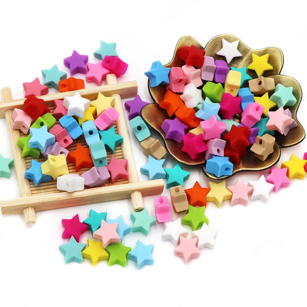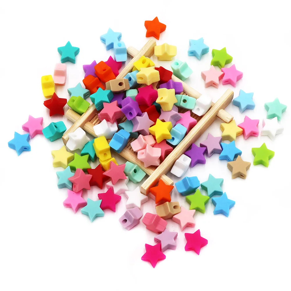 BOBO.BOX, 10 шт., Силиконовые бусы, мини-бусины с сердечками в виде звезд, сделай сам, детские соски, цепочка, подвеска, BPA, Бесплатная Экологичная игрушка для прорезывания зубов