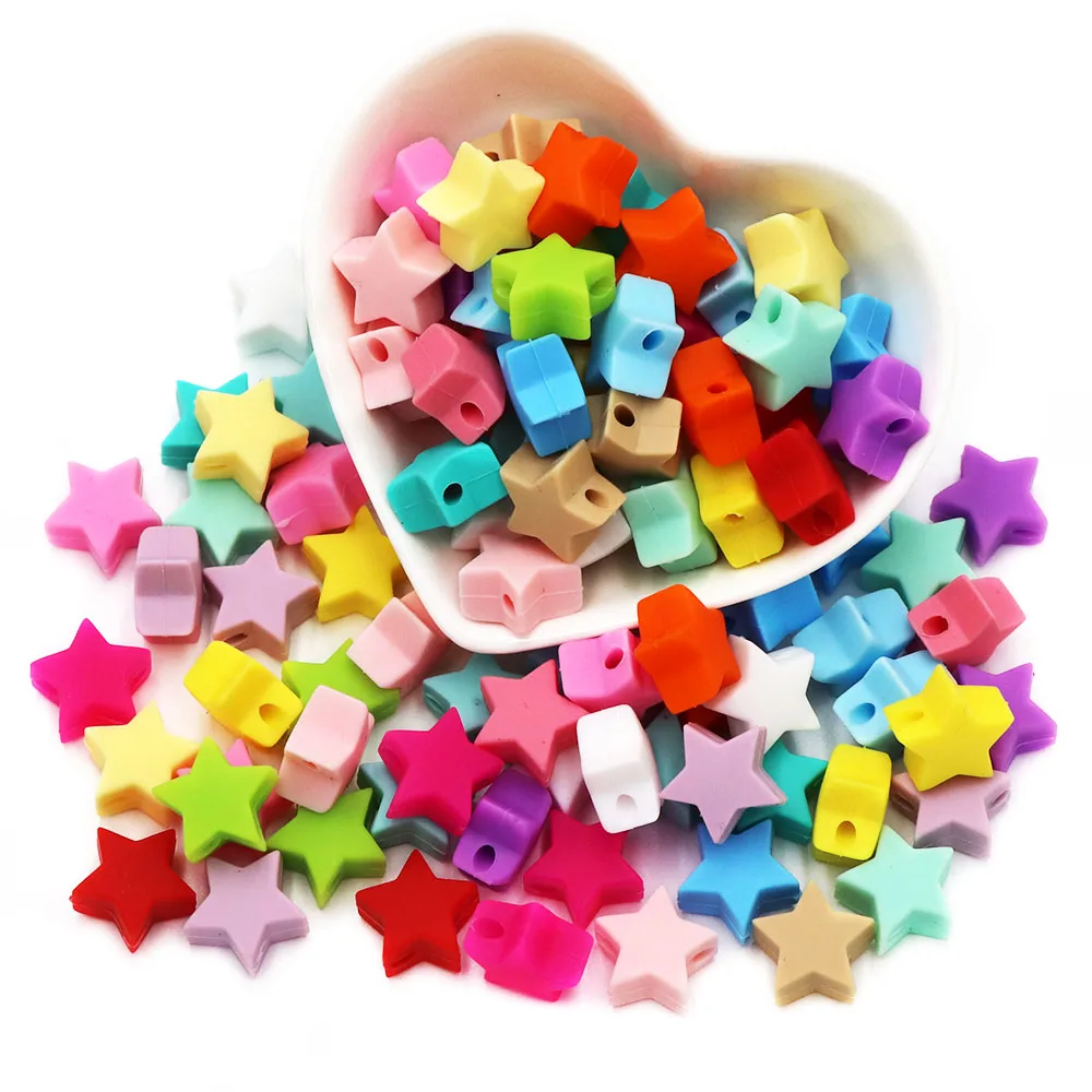 BOBO.BOX 10 шт. силиконовые бусины, мини звезда, сердце, бусины, сделай сам, детская цепочка для пустышки, подвеска, не содержит Бисфенол А, экологически чистые детские игрушки для прорезывания зубов