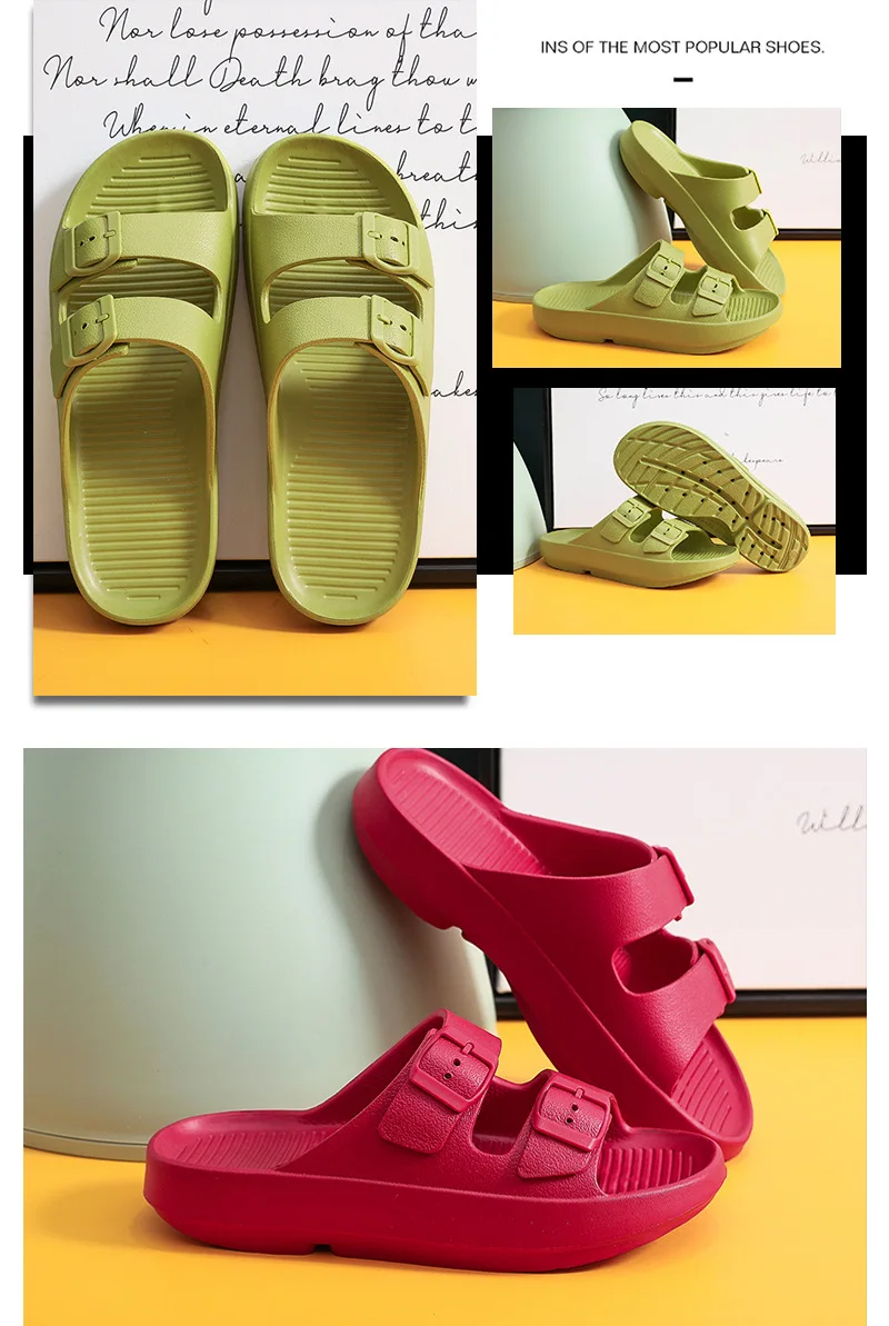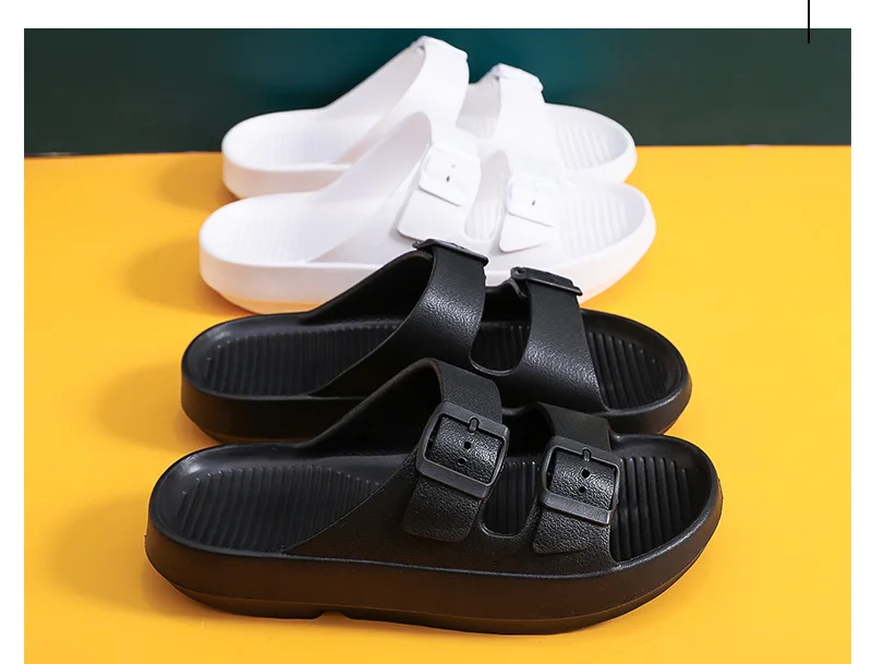 Сандалии женские на платформе, модные шлепанцы на толстой плоской подошве, пластиковые, с двумя пряжками, мюли, летняя Уличная обувь