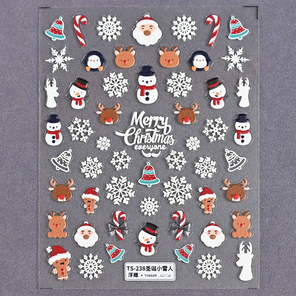 1 шт. 5D стереоскопическая наклейка для ногтей матовая прозрачная самоклеющаяся наклейка для ногтей s Christma снеговик/цветы/Кролик для ногтей