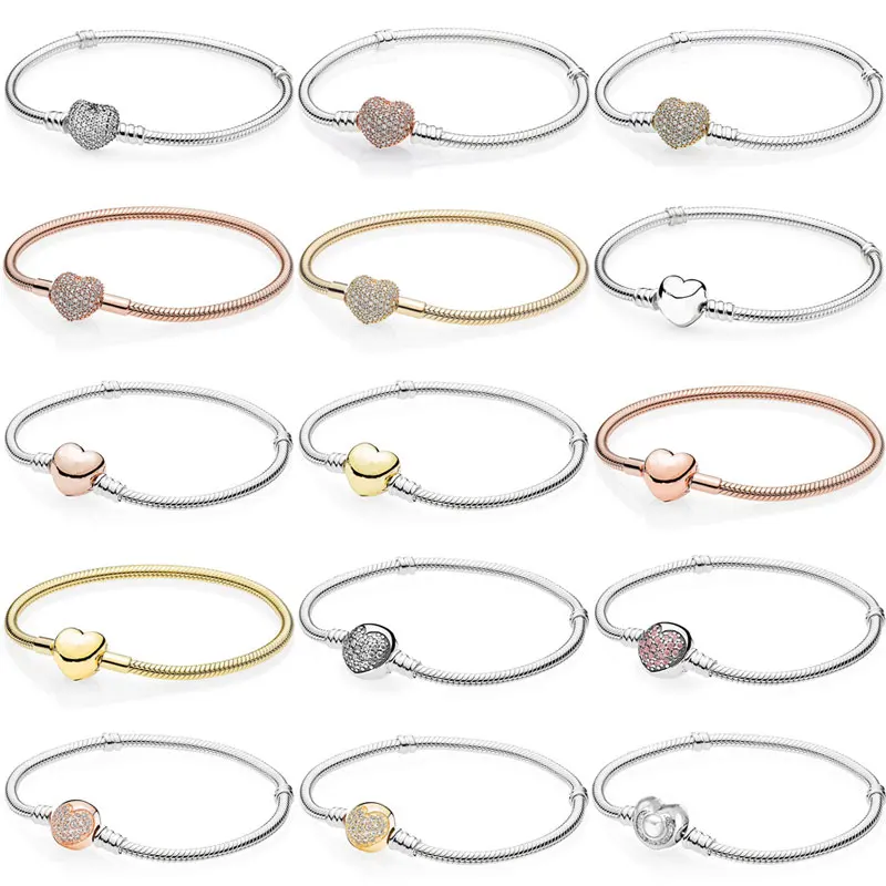 Розовые золотые и серебряные моменты, застежка в форме сердца, змеи...