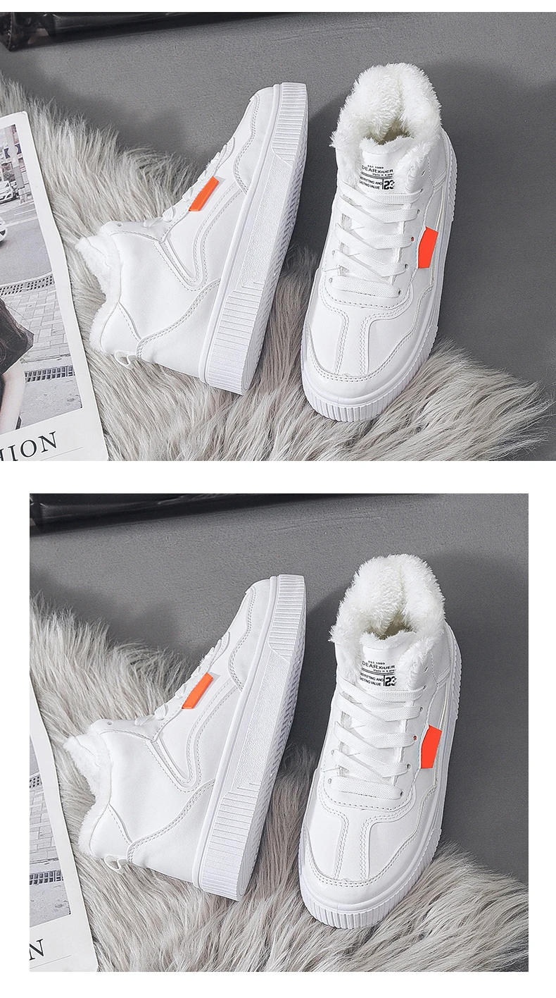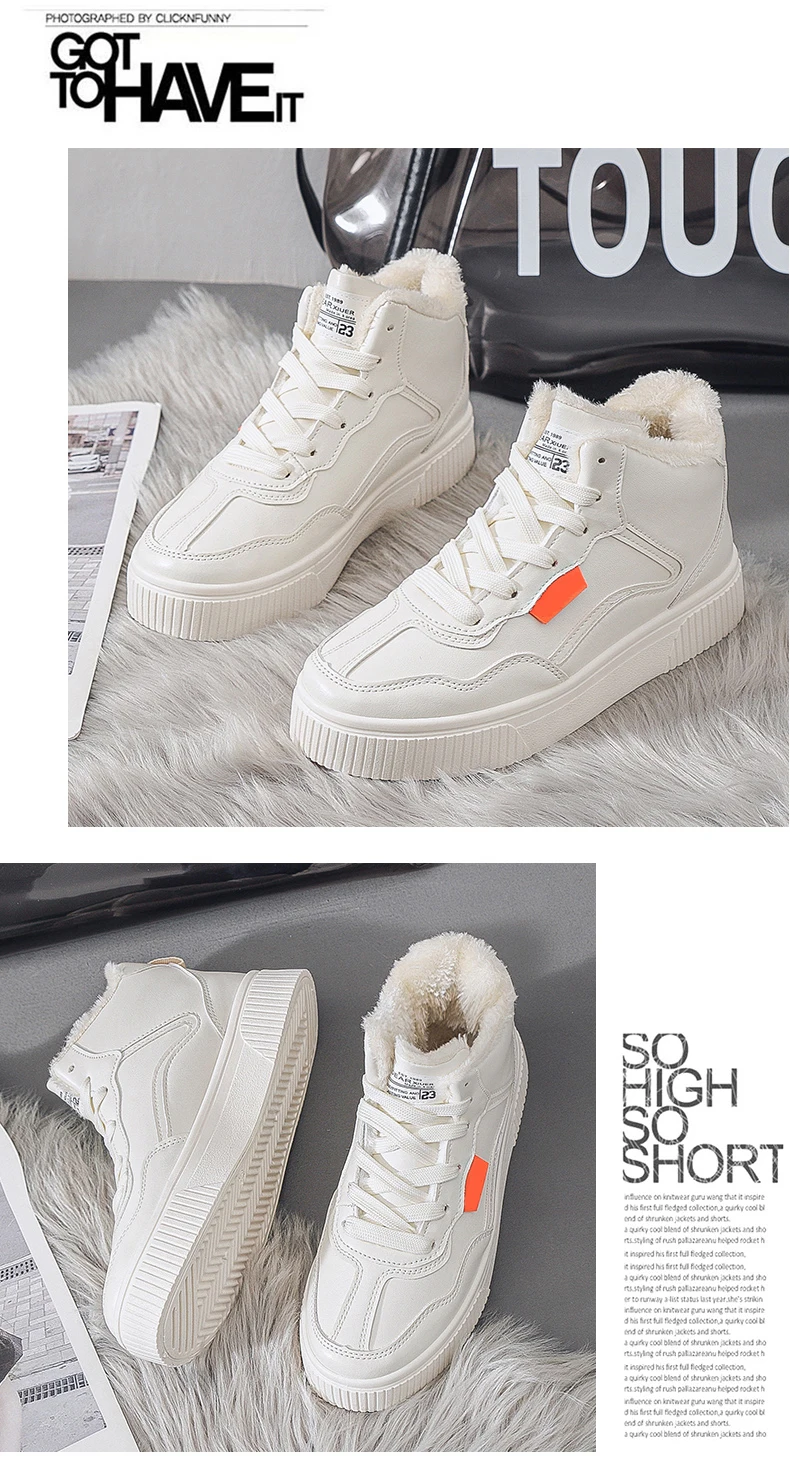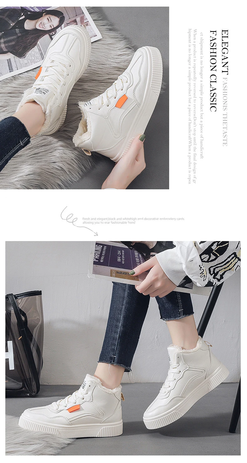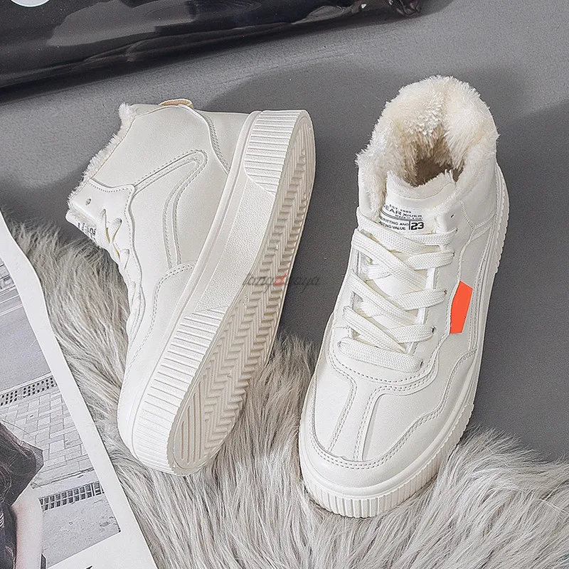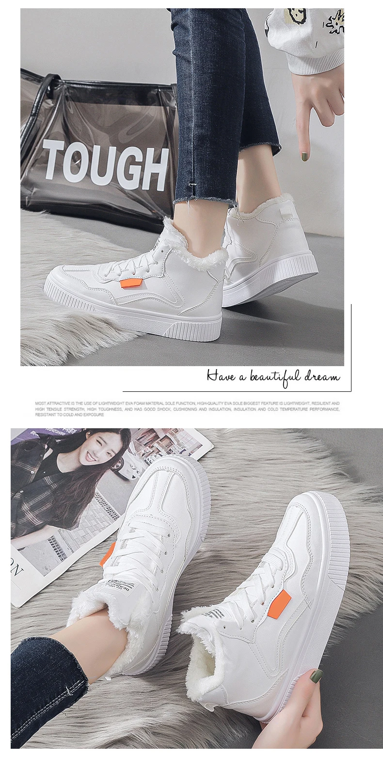 Женские высокие кроссовки на платформе, теплые спортивные ботильоны, Повседневная модная обувь, белые, Осень-зима