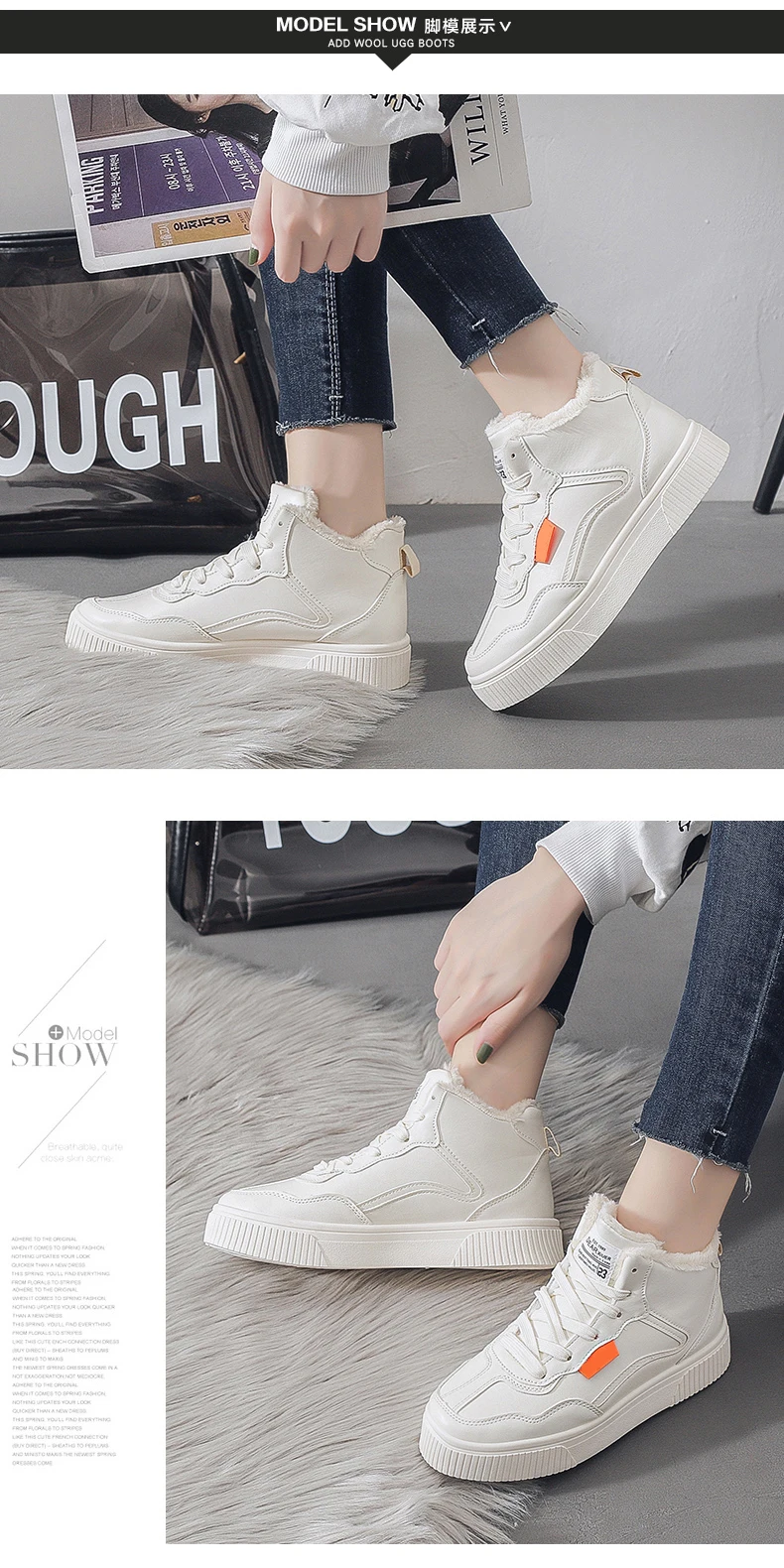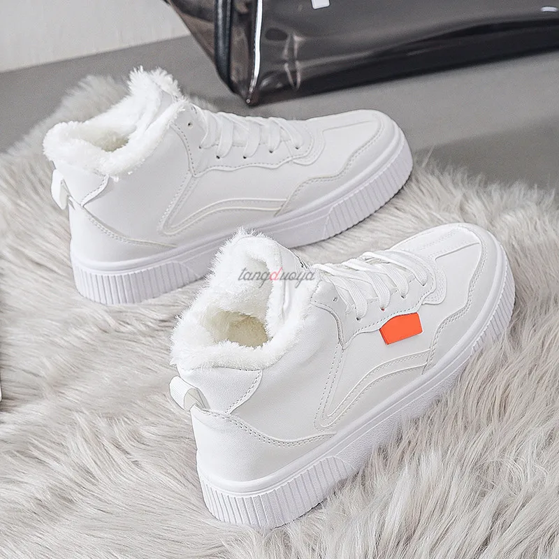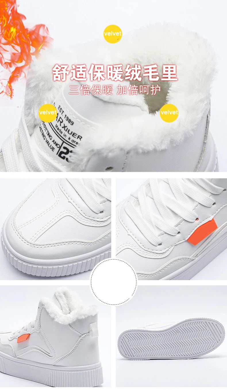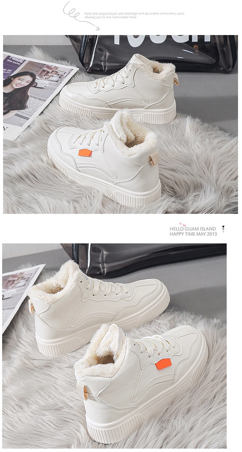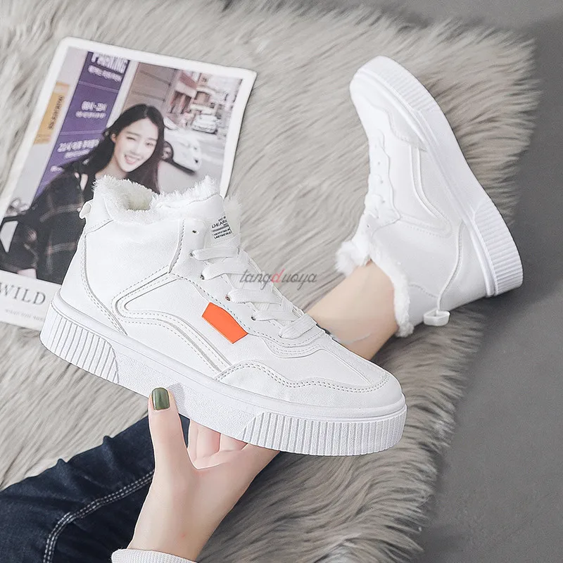 Женские высокие кроссовки на платформе, теплые спортивные ботильоны, Повседневная модная обувь, белые, Осень-зима