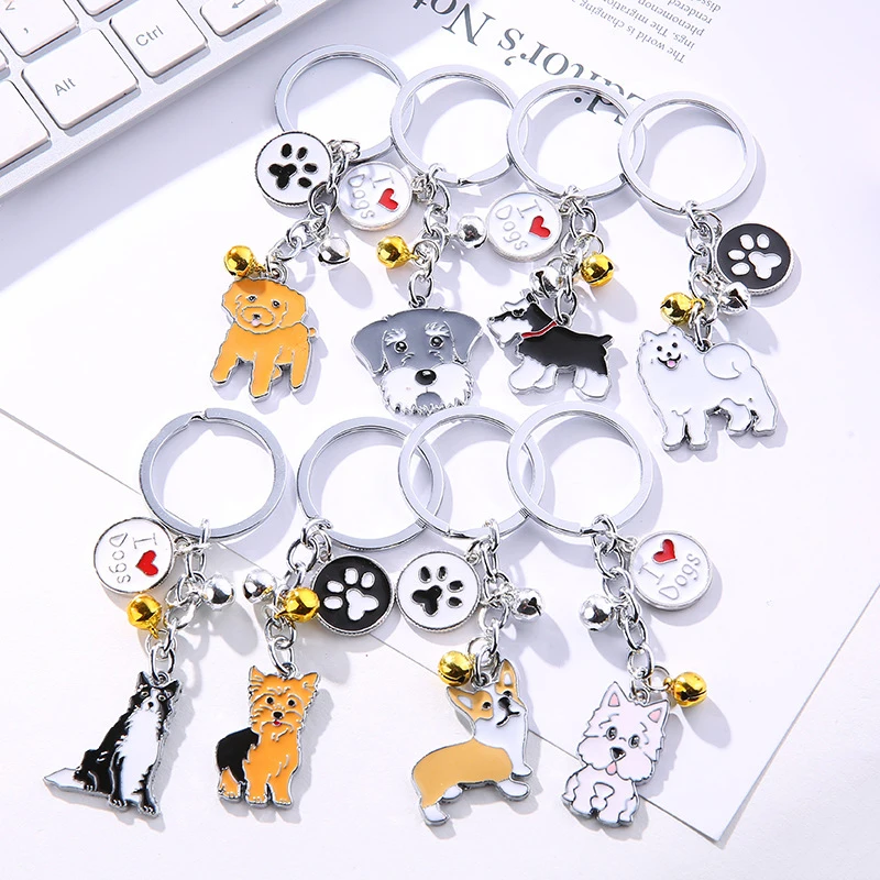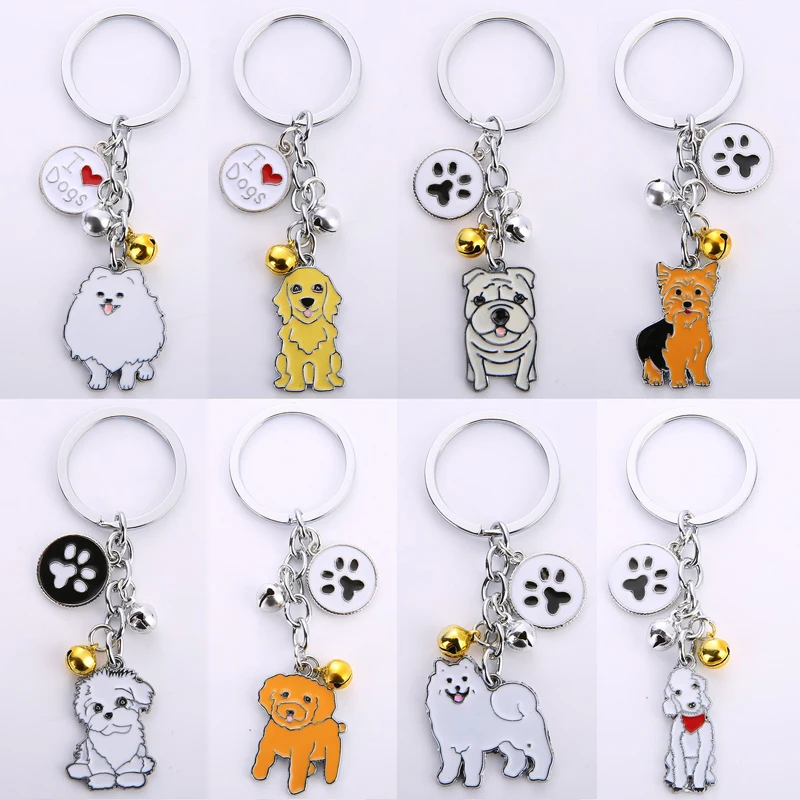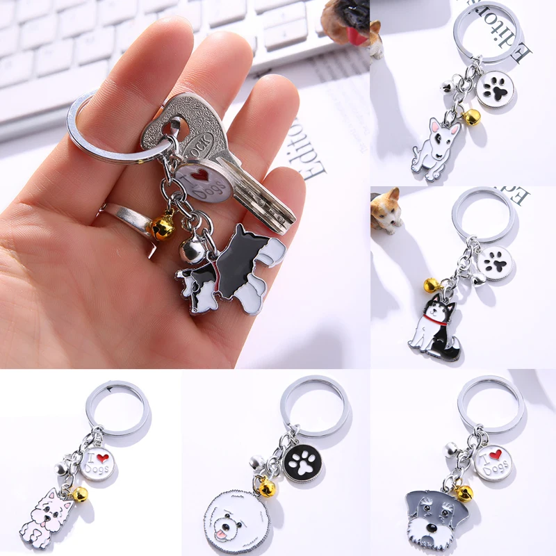 Металлический брелок для ключей с изображением собаки милого бульдога Тедди самоеда Лабрадора ретривера Сибирского Хаски Очаровательные Брелки для женщин мужчин сумки автомобиля ювелирные изделия