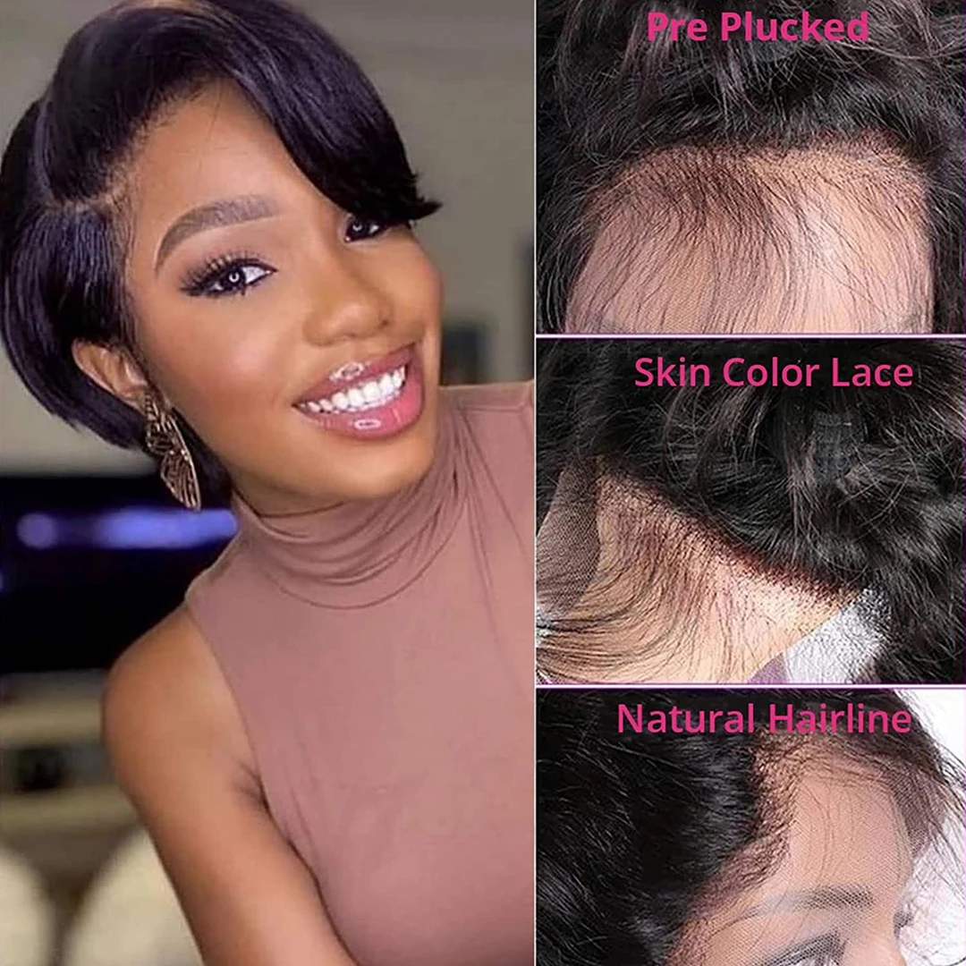 Короткий парик, парик с вырезами фея, прямые парики из человеческих волос, дешевый парик из человеческих волос, HD прозрачный парик на сетке спереди для женщин, предварительно выщипанный