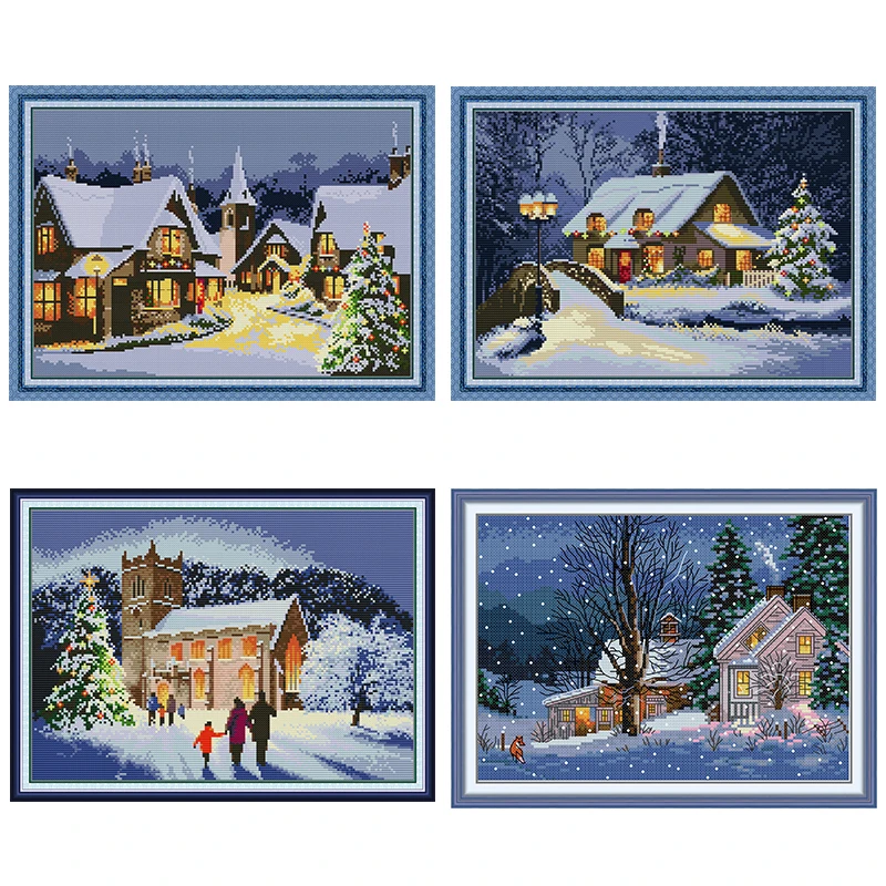 Набор для вышивки крестиком с изображением маленького города, Рождественский Ночной пейзаж, игольчатая ткань и нитки 11CT, игольчатая ткань, набор для домашнего декора, подарки