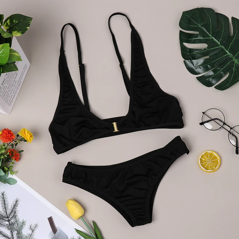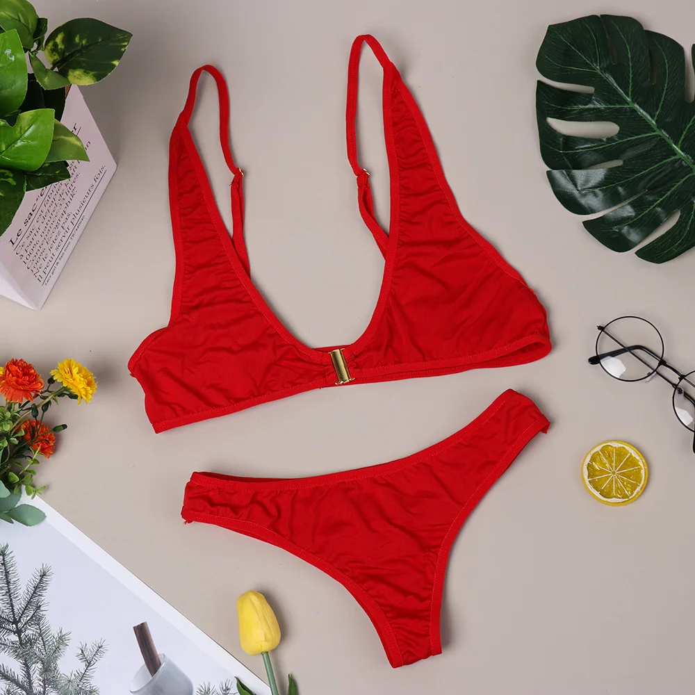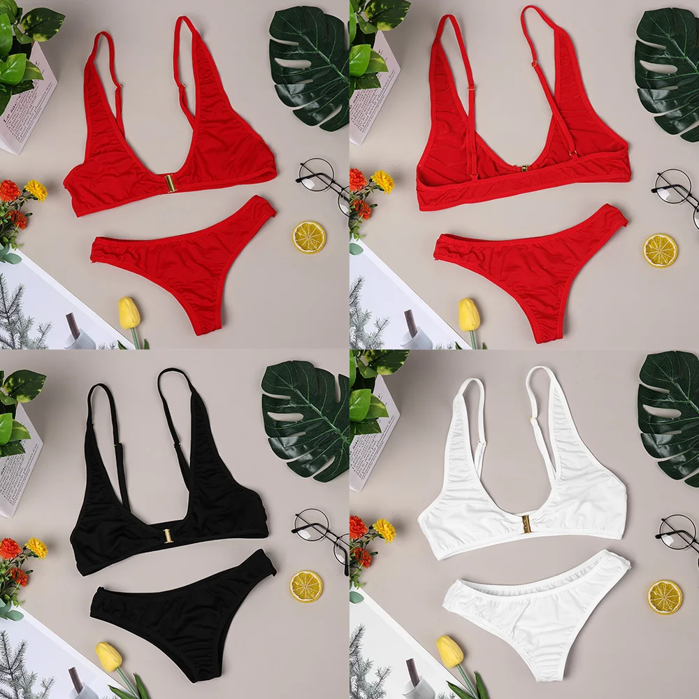 Новинка 2022, сексуальное бикини, однотонный купальник, женский купальник, комплект бикини пуш-ап, Бразильский купальный костюм, летняя пляжная одежда, купальный костюм