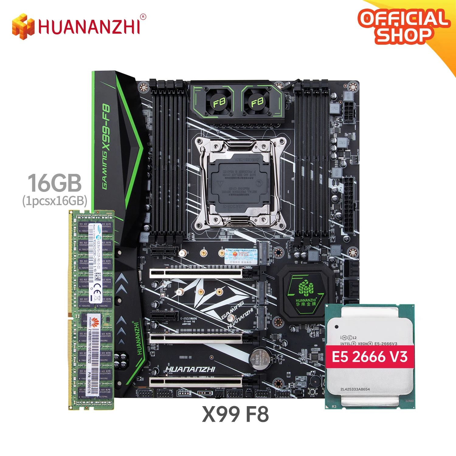 HUANANZHI X99 F8 X99 материнская плата с Intel XEON E5 2666 v3 с 1*16G DDR4 RECC память комбинированный комплект NVME SATA USB