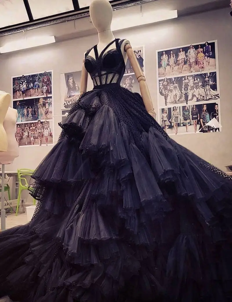 Великолепный Королевский синий свадебное платье многоуровневые обор...