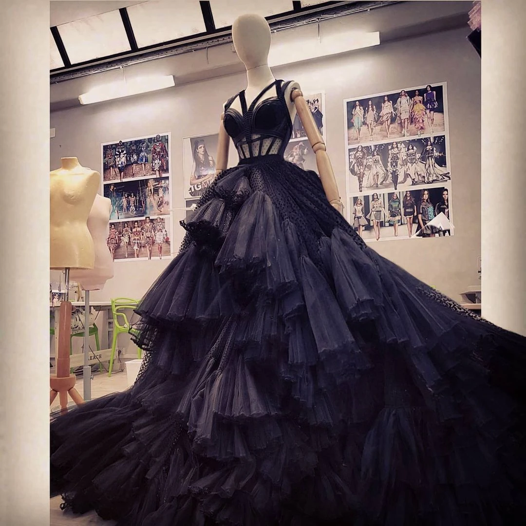 Красивые черные тюлевые юбки невесты с цветными краями из органзы 2...