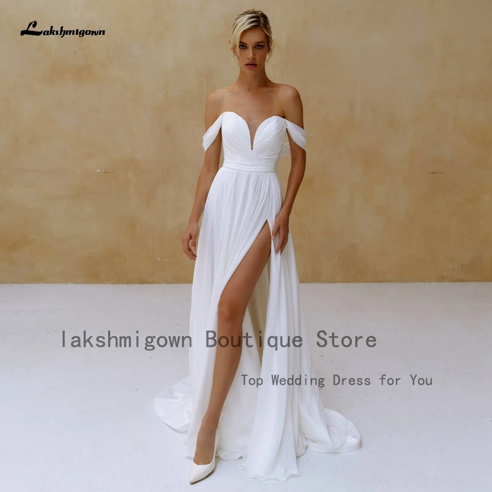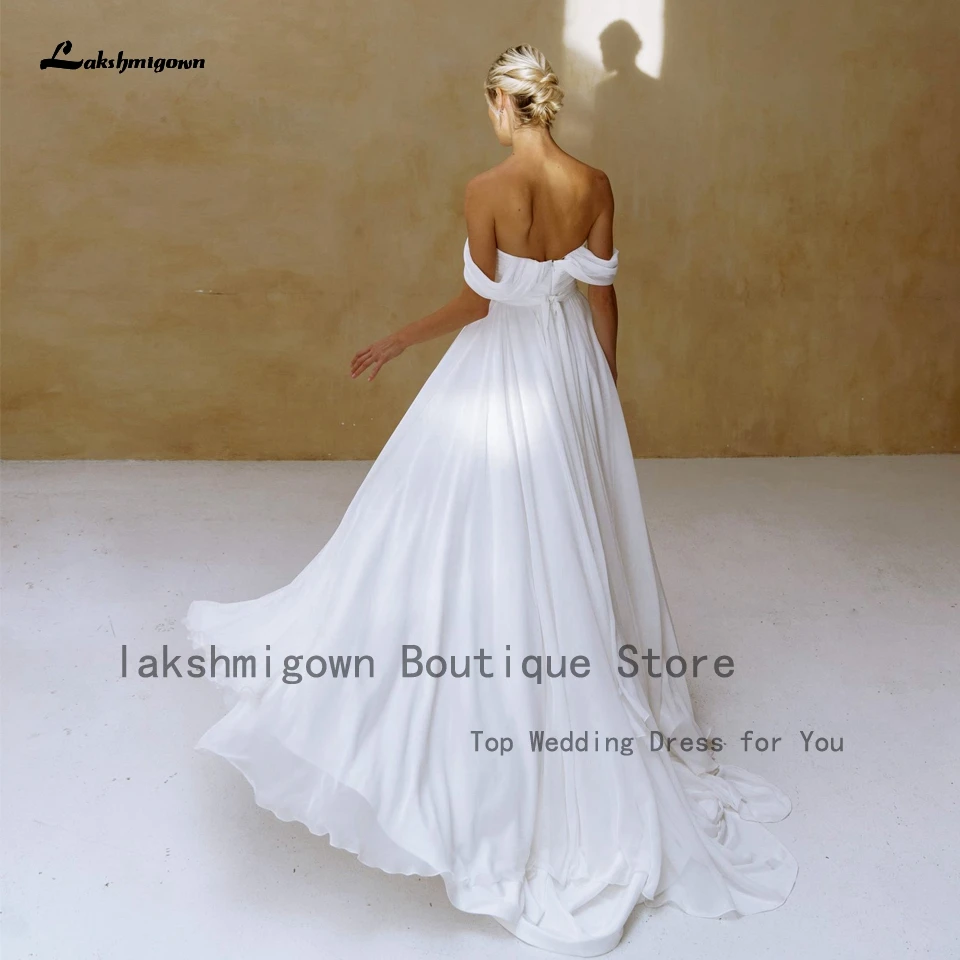 Lakshmigown Дешевое Пышное шифоновое длинное пляжное свадебное платье с открытыми плечами и рюшами пикантное свадебное платье 2022 Robe Femme
