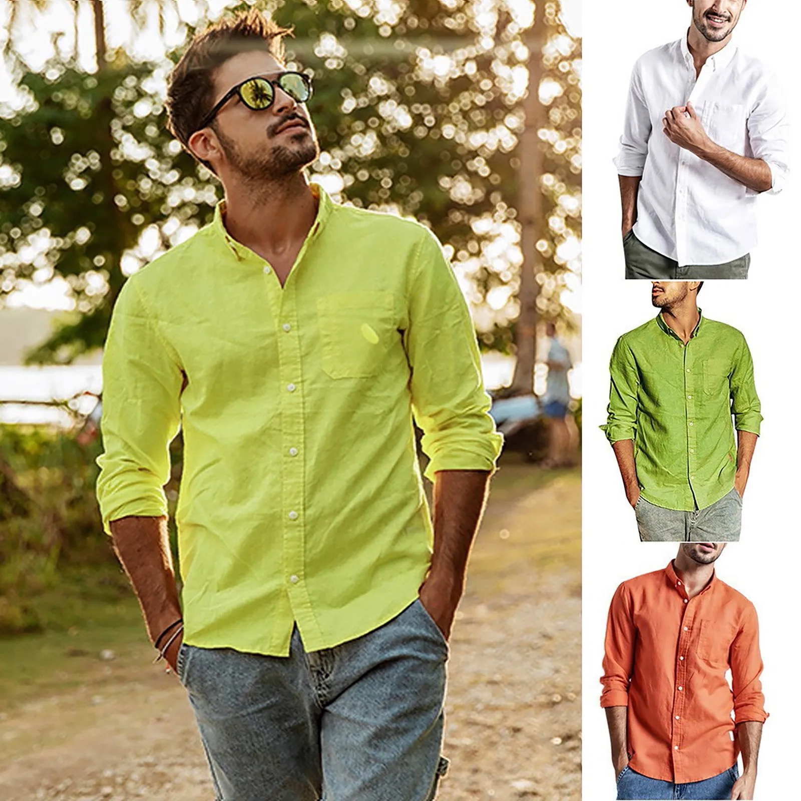Модная Мужская Летняя Повседневная льняная и хлопковая блуза с длинными рукавами и пуговицами