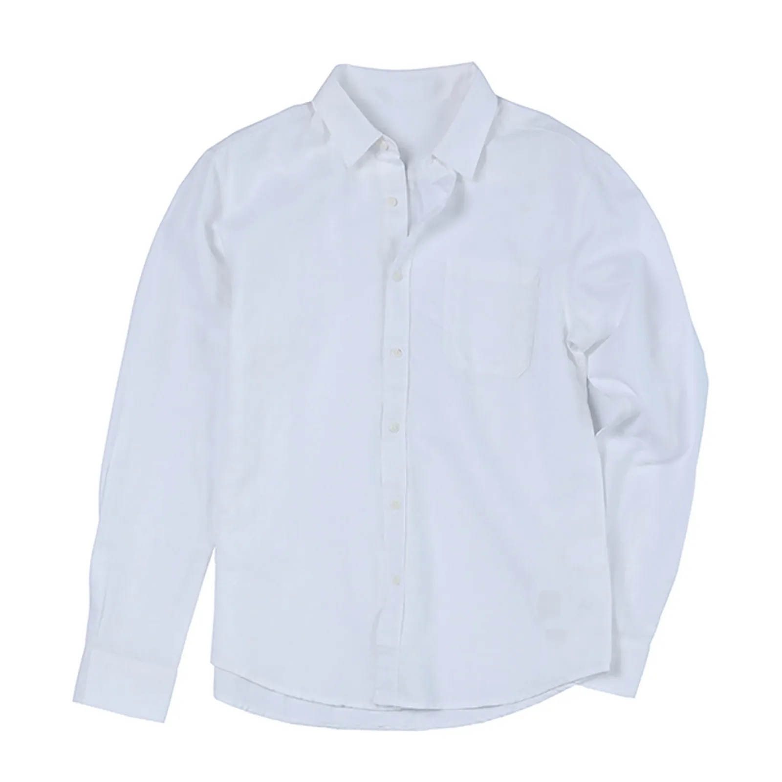 Рубашка мужская летняя однотонная с длинным рукавом, из хлопка и льна
