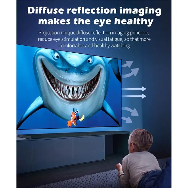 Особенности: -- Новый дизайн оптических линз с коротким фокусом. Фокусировка на расстоянии 50 см. Добавьте коррекцию искажения края изображения, значительно улучшите равномерность изображения -- Новый интерфейс пользовательского интерфейса, поддержка многоформатного видеоаудио, изображений, воспроизведения электронных книг -- Бережное Производство. Высококачественный процесс, высококачественный АБС-материал, строгий контроль качества -- Встроенный миниатюрный динамик. Технология ультразвуковой сварки, малый размер также имеет громкий эффект -Диффузное отражение изображения делает глаз здоровым. Уникальный принцип диффузного отражения изображения, уменьшает стимуляцию глаз и усталость зрения, так что morecomfortable и здоровый просмотр