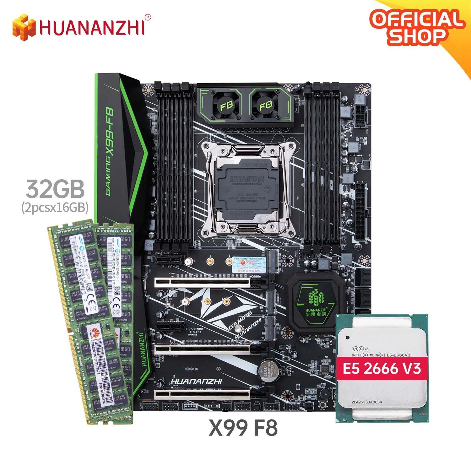 HUANANZHI X99 F8 X99 материнская плата с Intel XEON E5 2666 v3 с 2*16G DDR4 RECC память комбинированный комплект NVME SATA USB