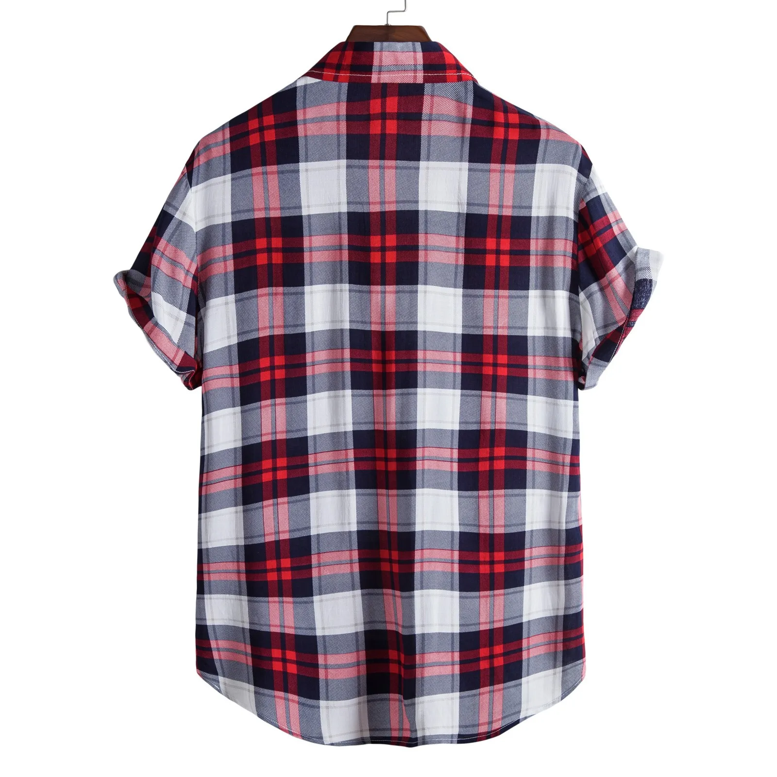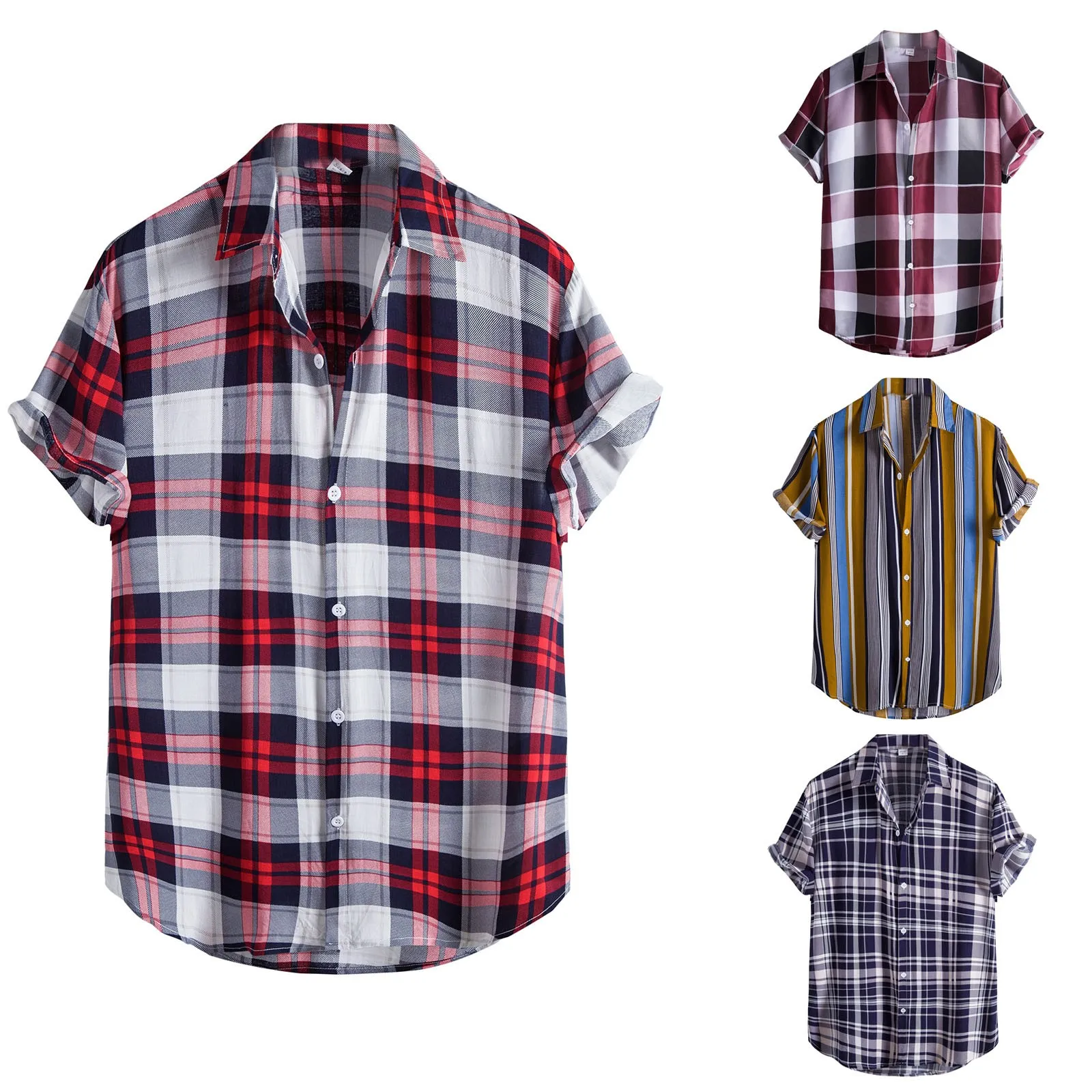 Мужская рубашка в клетку, с коротким рукавом, на пуговицах, летняя повседневная футболка, Классическая рубашка, Лидер продаж 2022