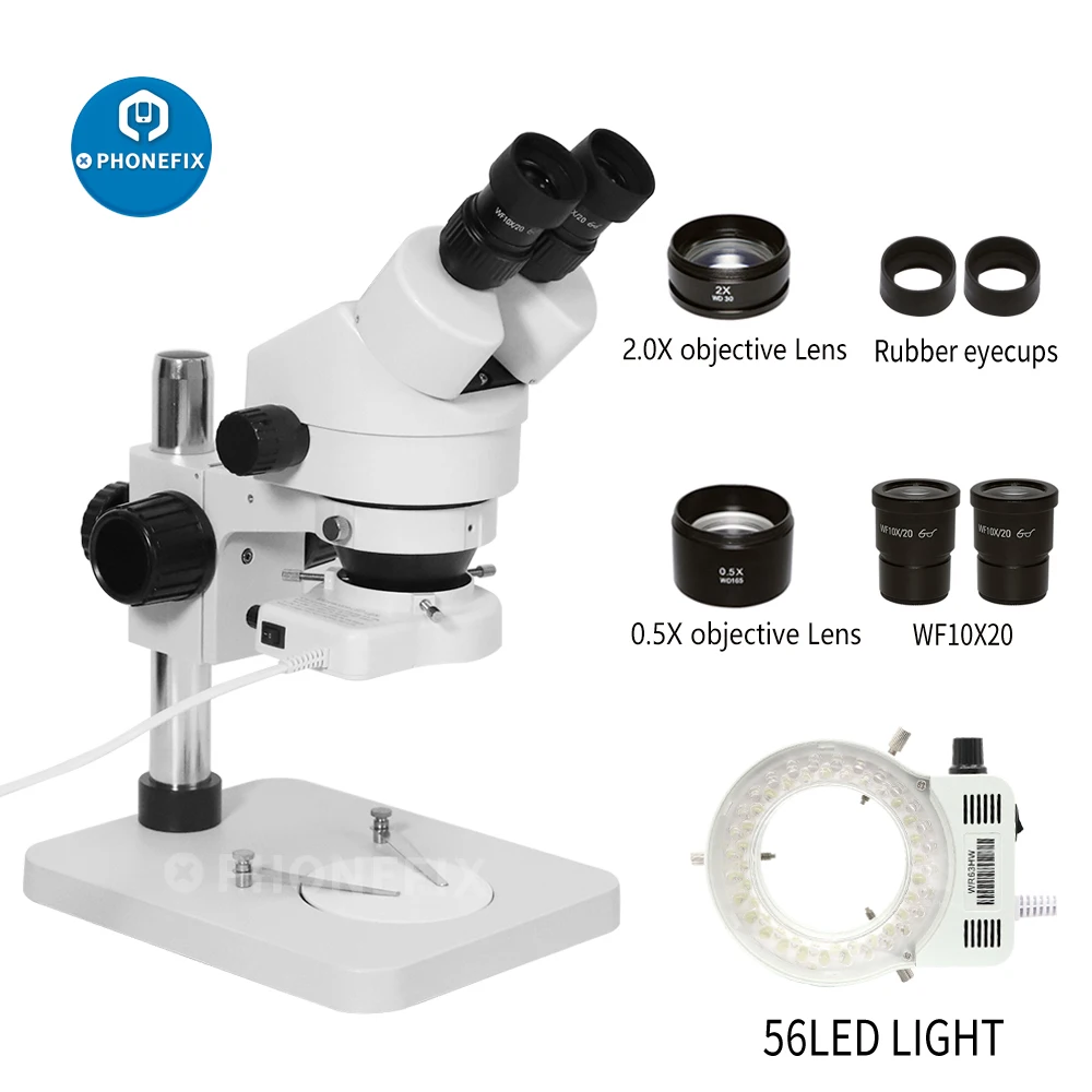 3.5X-180X непрерывный зум бинокулярный стерео микроскоп WF20X/10 мм окуляр 56 светодиодный фонарь 0.5X 2X объектив для телефона PCB SMD ремонт