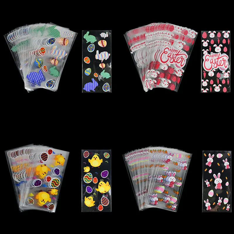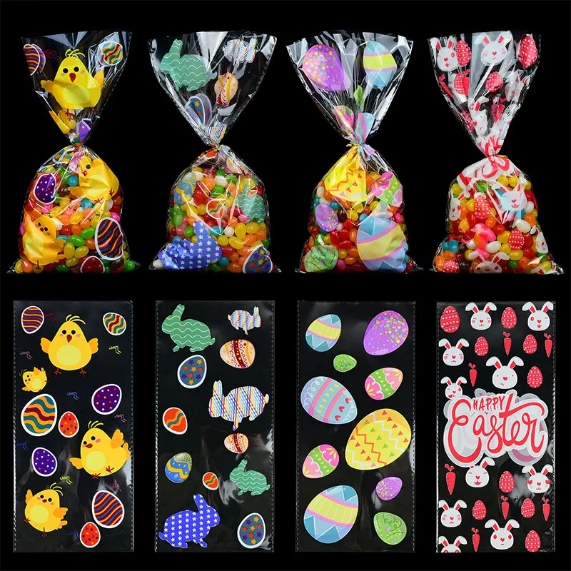 50 шт счастливые пасхальные конфеты мешок прозрачный пластиковый мешок мультфильм кролик яйца печенья упаковочный пакет для печенья пасхальные вечерние обертки