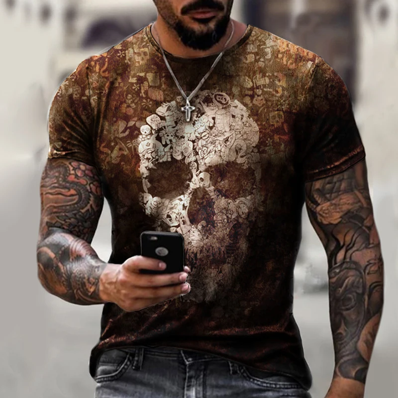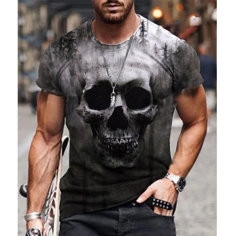 Футболка мужская оверсайз с круглым вырезом, модная тенниска с 3D-принтом черепа, Повседневная Удобная майка с коротким рукавом, лето