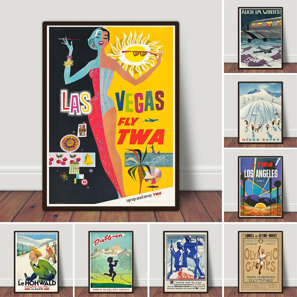 Лас-Вегас Fly TWA Trans World Airlines винтажные путешествия для спальни домашний декор