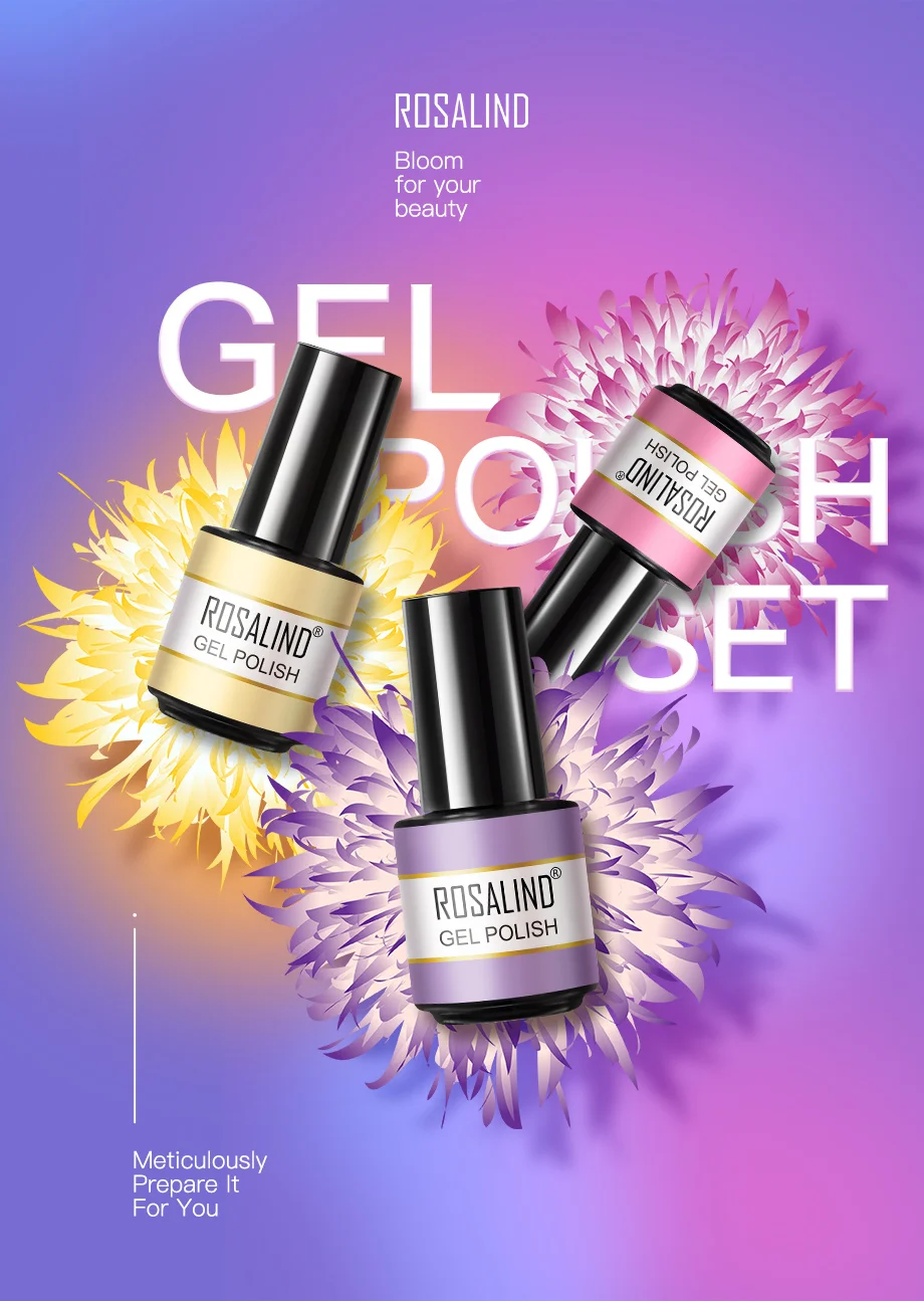 ROSALIND набор гель-лаков с блестками набор для полировки Полуперманентная основа верхнее покрытие для Naisl Art Soak Off UV LED Лампа лак