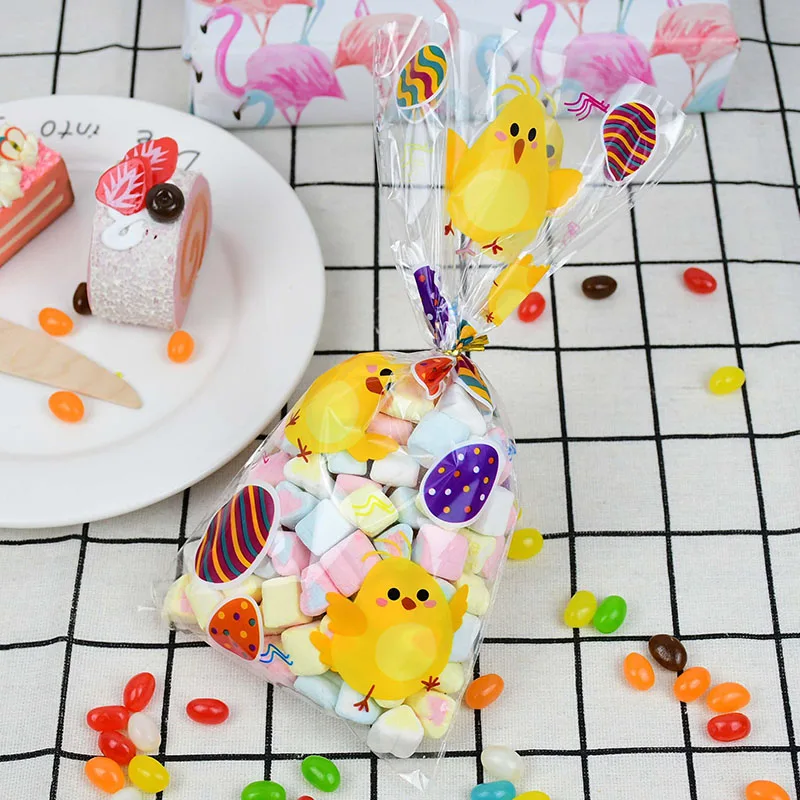 50 шт., пасхальные пакеты для конфет, кролик, яйца, Цыпленок, целло...
