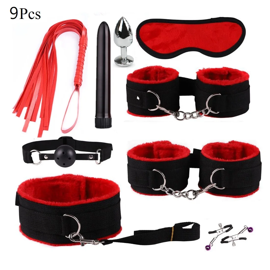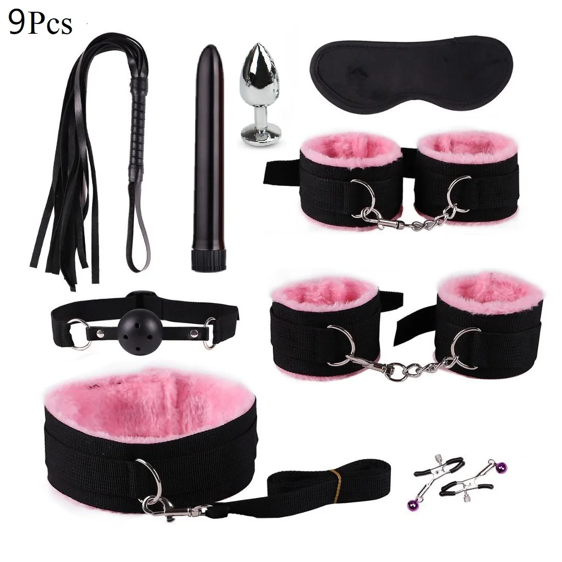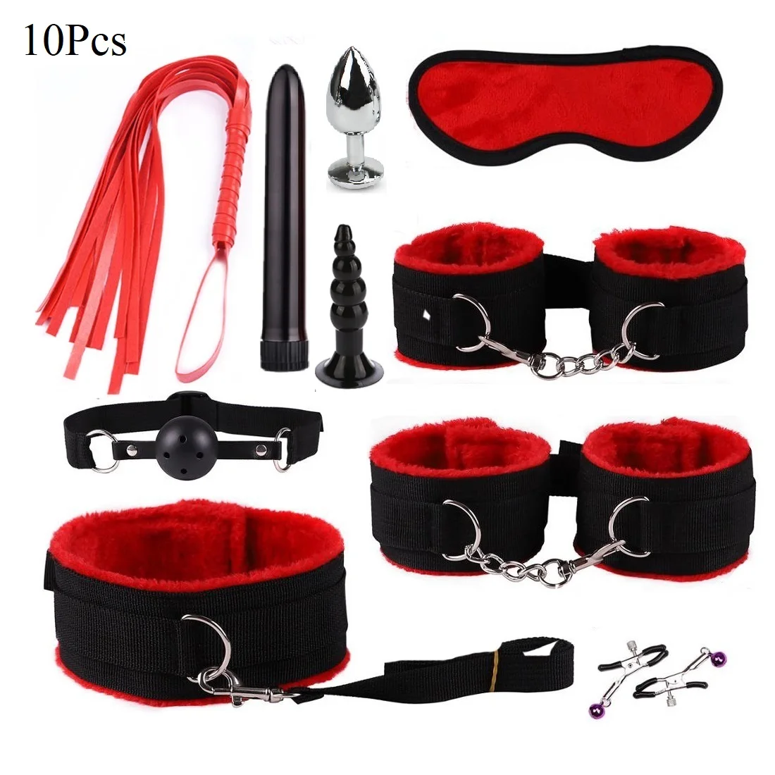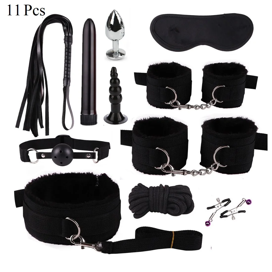 Набор из 12 шт., набор БДСМ, Секс Бандаж, кожаные комплекты для связывания, интимный воротник, наручники, кнут, 12 шт., эротический секс, женский