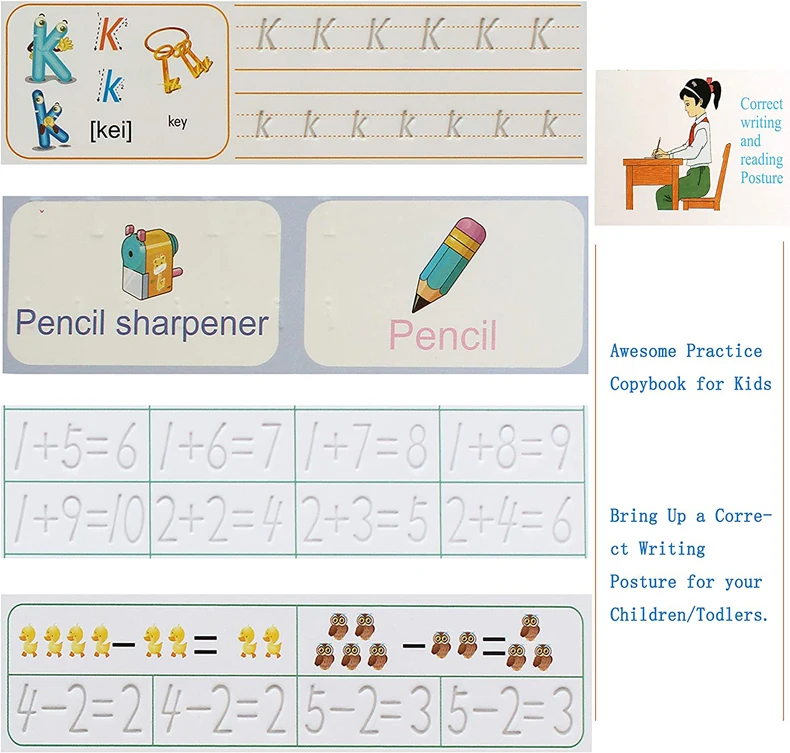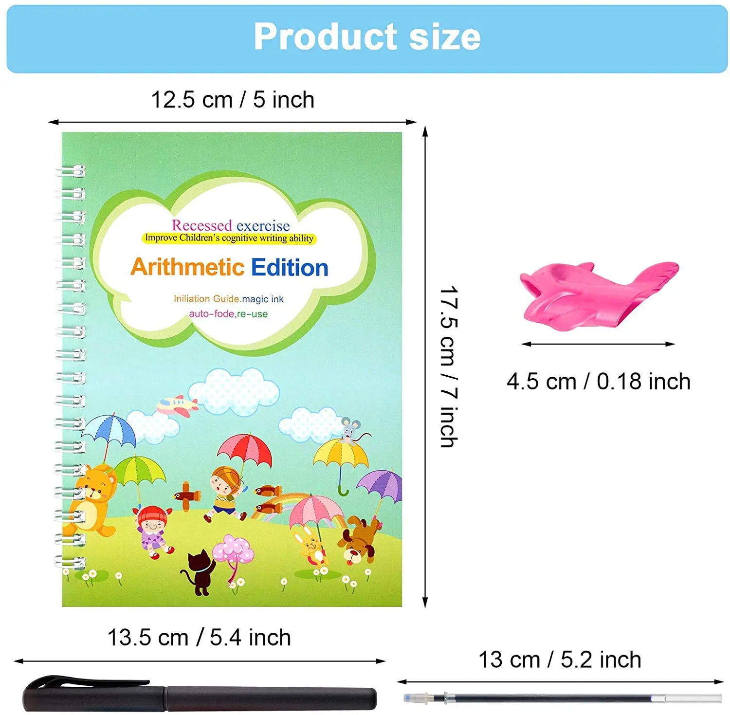 Стиль обложки: английский/французский/немецкий/арабский/китайскийОсобенности: рельефный, многоразовыйТип: детская книга для упражненийПодходящий возраст: 3-8 летНазвание: Детская Волшебная книжкаМатериал: белый картонПосылка включает в себя: 4 книги + подарокПодарок: 1 чехол-карандаш + 5 заправок + инструмент для удержания ручкиМы использовали волшебную ручку для письма. После написания в течение определенного периода времени шрифт исчезнет и вернется в исходное состояние, которое можно использовать повторно.