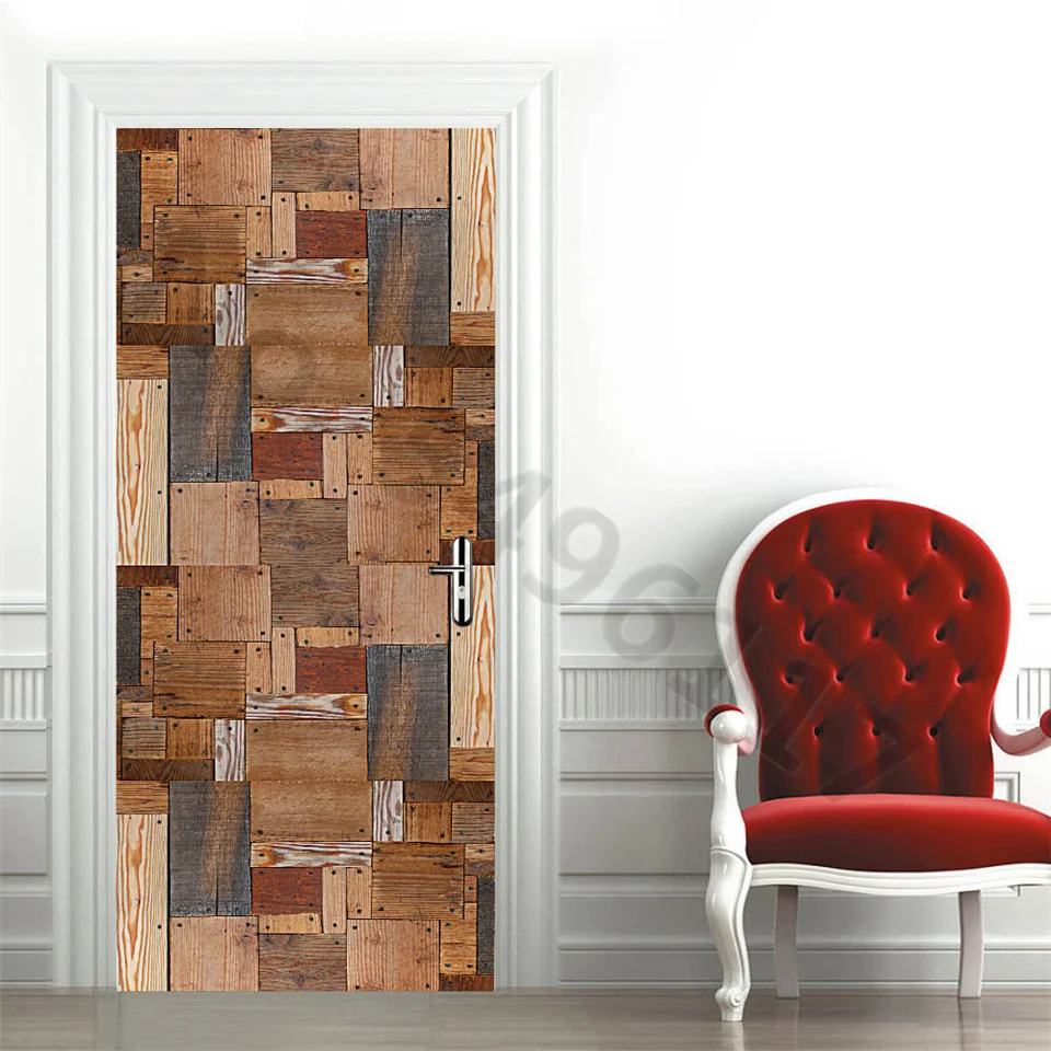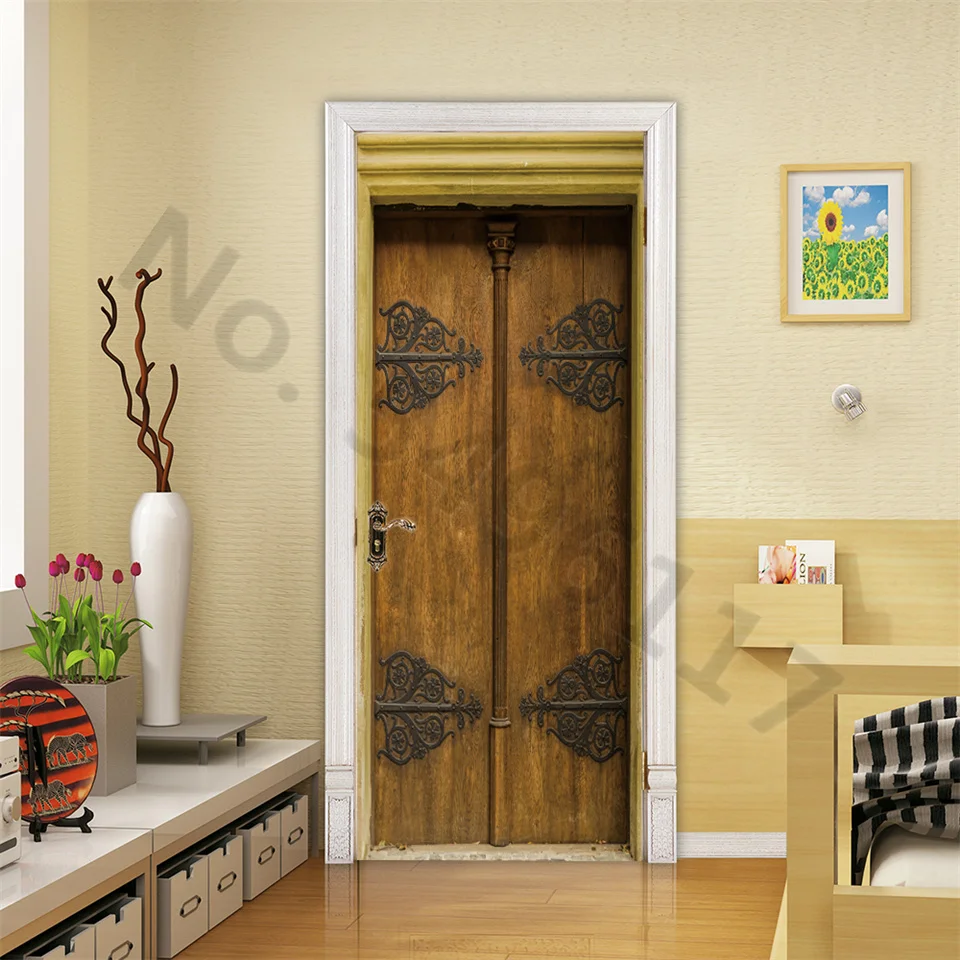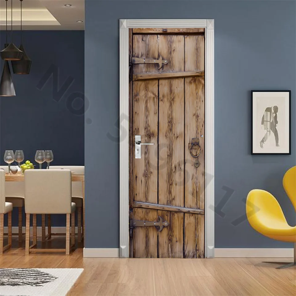Ретро стикер двери s имитация деревянных дверей обои 3D самоклеющиеся виниловые наклейки на стену гостиная коридор Декор Наклейка для дома