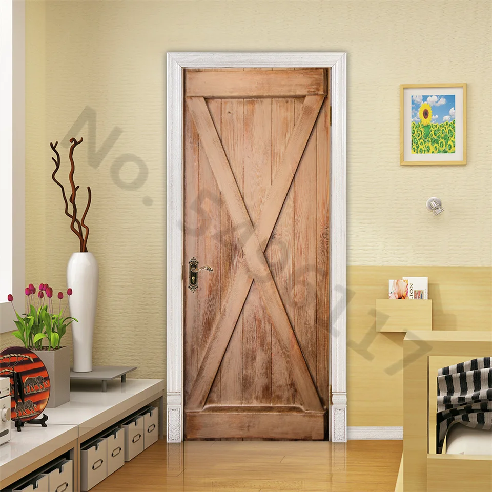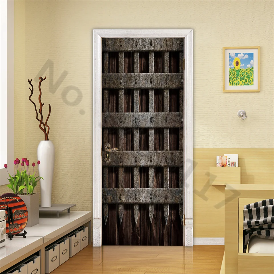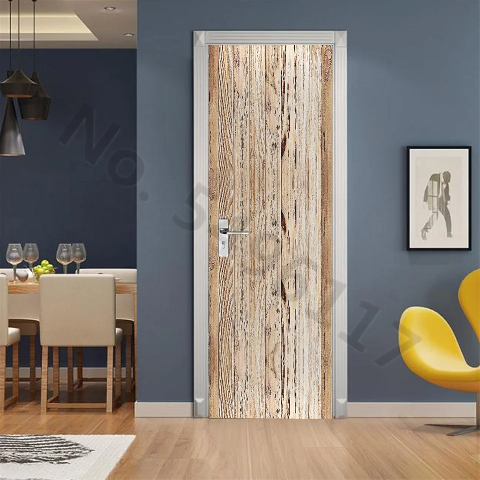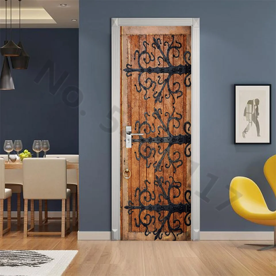 Ретро стикер двери s имитация деревянных дверей обои 3D самоклеющиеся виниловые наклейки на стену гостиная коридор Декор Наклейка для дома