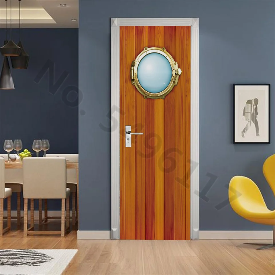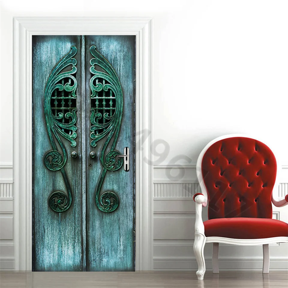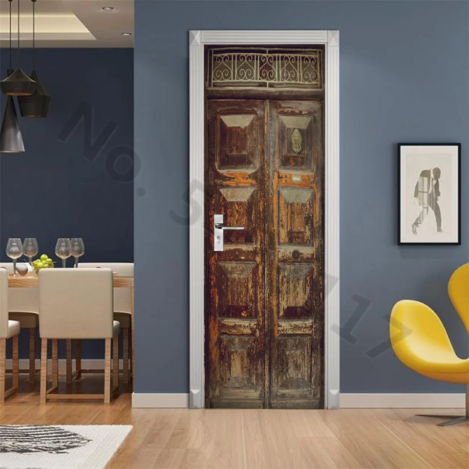 Наклейка на дверь в стиле ретро, виниловая самоклеящаяся наклейка на стену с имитацией деревянных дверей, 3D декор для гостиной, коридора