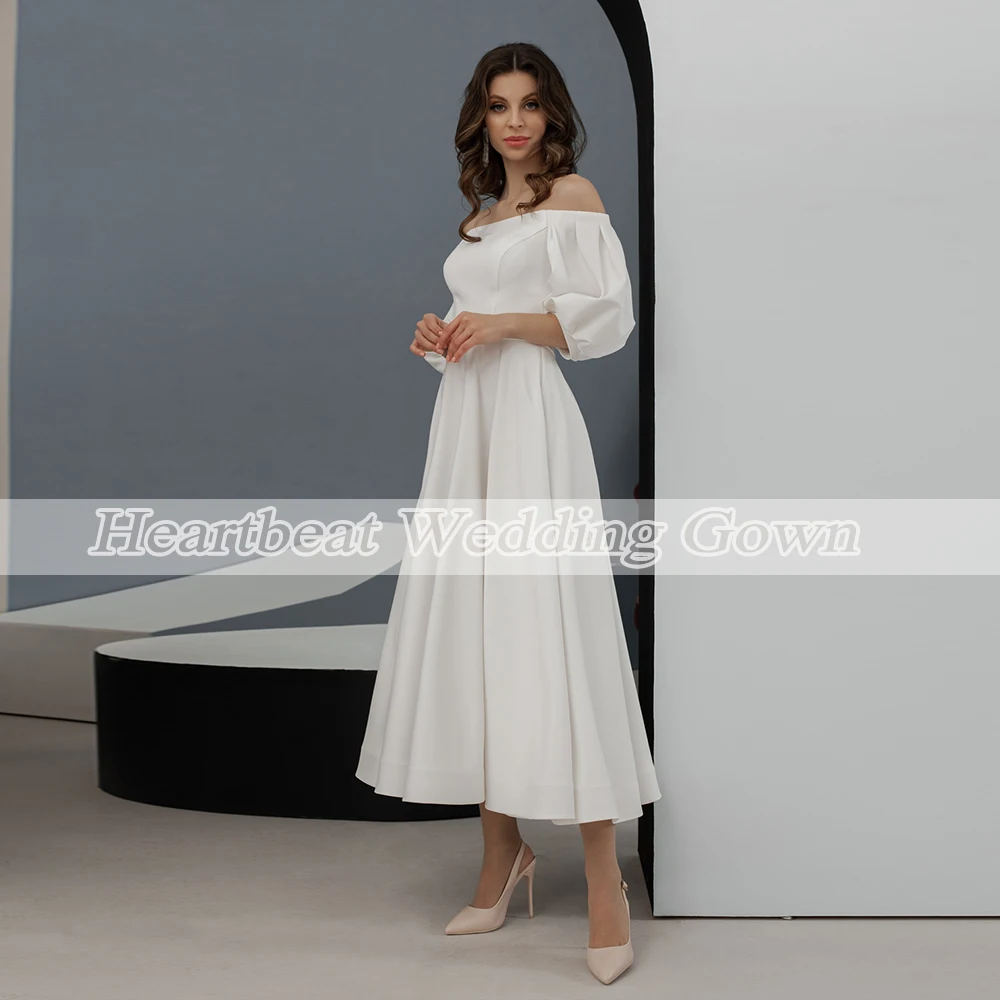 Элегантные гражданские Короткие свадебные платья для невесты, свадебное платье длиной ниже колена цвета слоновой кости, с пышными рукавами, трапециевидной формы, женское свадебное платье